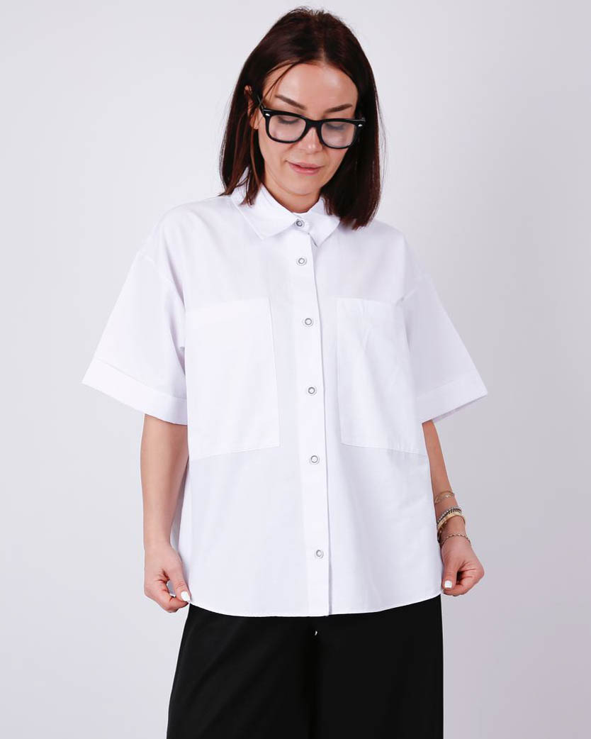 Рубашка Teto для девочки оптом. Модель объемная, прямого кроя, застегивается на пуговицы, рукава с манжетами.