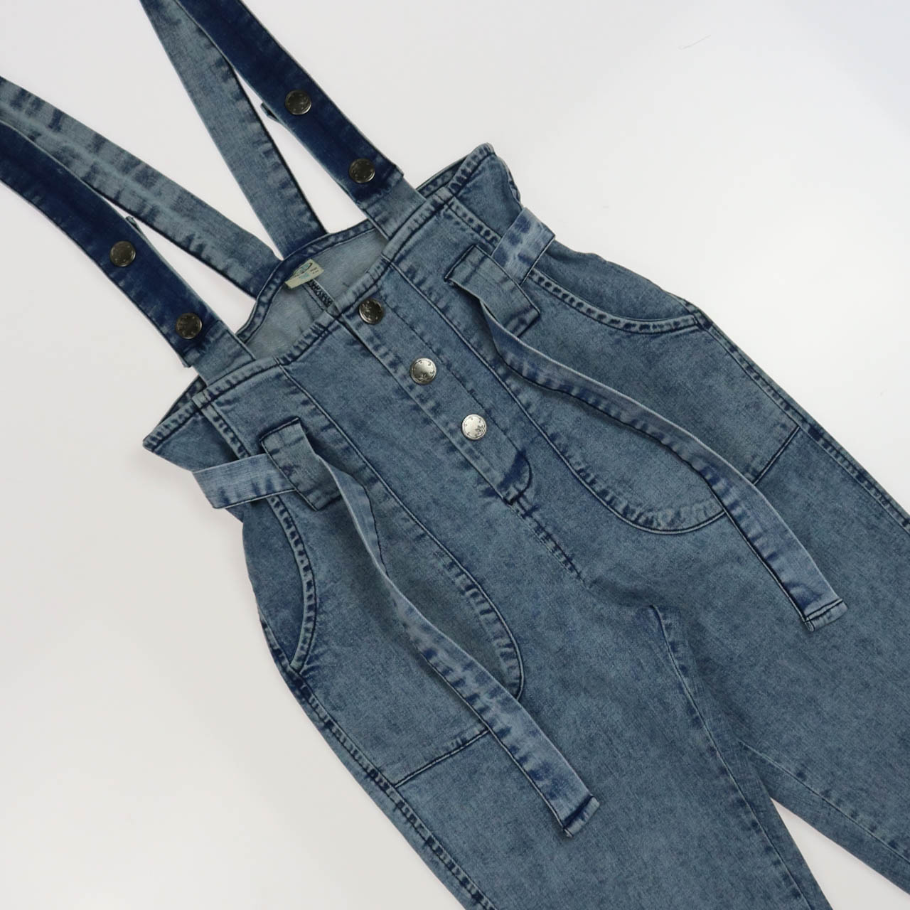 Детский джинсовый комбинезон DMB для девочки оптом. Брюки заужены, по бокам два кармана, лямки регулируются по длине. Модель с завышенной талией.