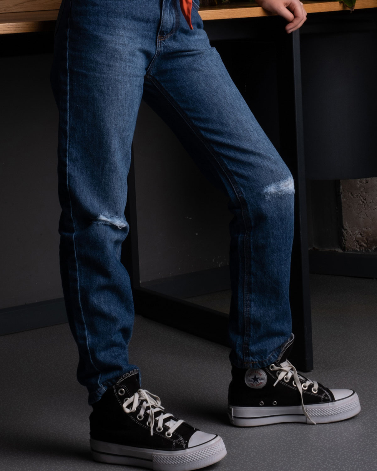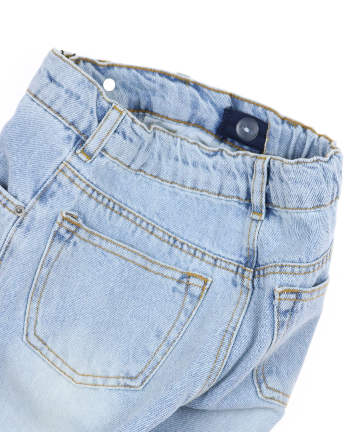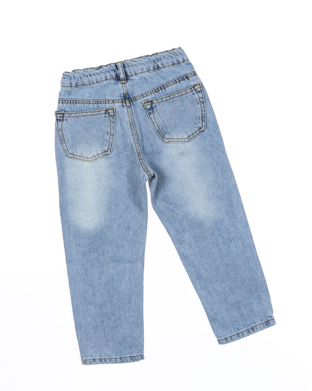 Модные рваные джинсы для девочки. Плотная джинсовая ткань делает их актуальными в любое время года и позволяет носить каждый день. Комфортная посадка не сковывает движения, при этом не делает джинсы слишком объёмными. Удобная функциональная резинка в поясе позволяет регулировать объем на талии. Ребенок  может сочетать джинсы с любым верхом и наслаждаться разными стилями, в зависимости от настроения.