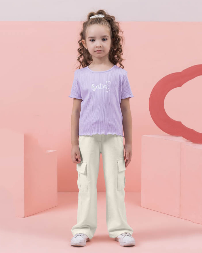 Модные брюки карго из габардина для девочки от бренда DMB оптом. Плотная хлопковая ткань делает их актуальными в любое время года и позволяет носить каждый день. Комфортная посадка не сковывает движения, при этом не делает джинсы слишком объёмными. Удобная функциональная резинка в поясе позволяет регулировать объем на талии. Ребенок  может сочетать брюки с любым верхом и наслаждаться разными стилями, в зависимости от настроения.