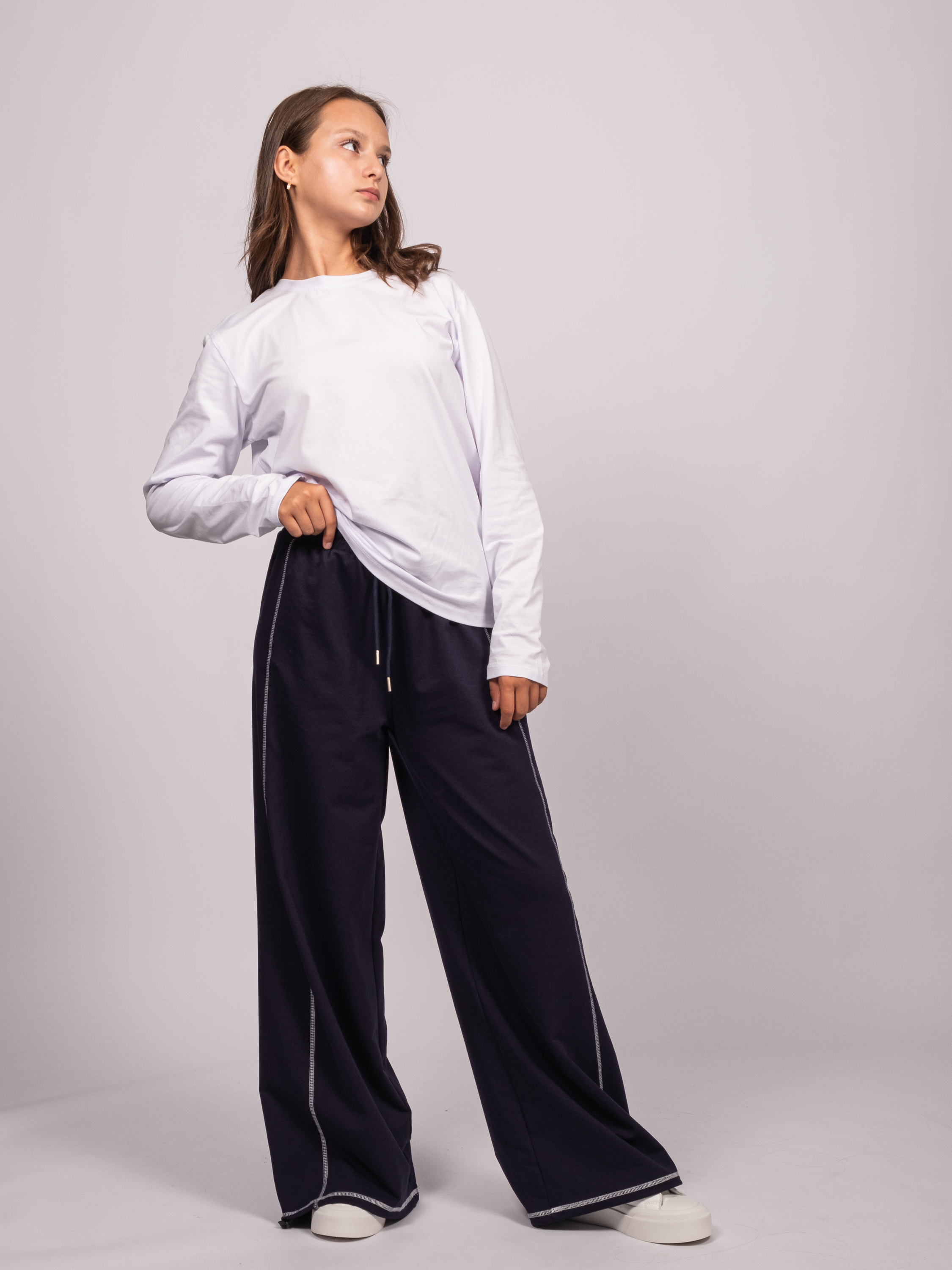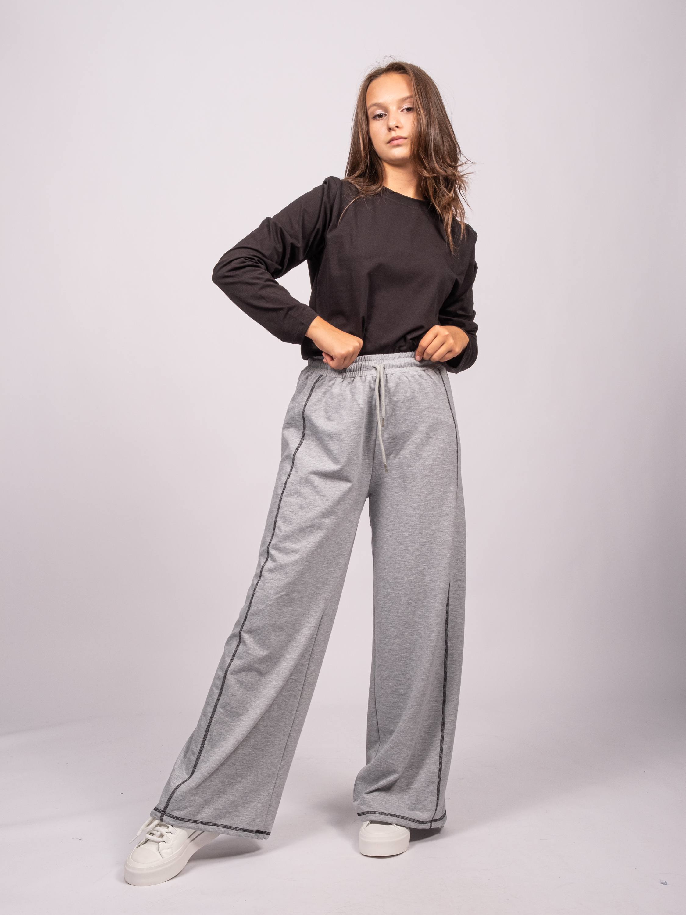 Спортивные брюки для детей школьного возраста из трикотажа  TMK оптом  созданы специально для ценителей комфорта : на поясе с  резинкой, без карманов.  Широкие, с регулируемой кулиской внизу, брюки-одни из самых актульных фасонов. Штаны отлично подойдут  на каждый день.