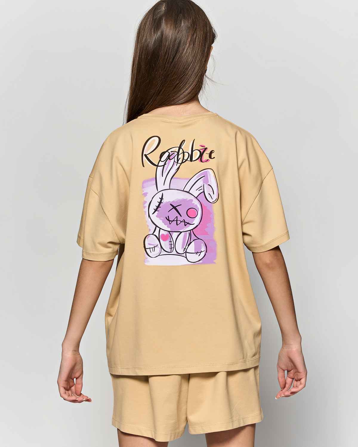 Футболка Cegisa для девочки оптом, выполнена из высококачественного материала. Модель свободного кроя, с двух сторон нанесен принт.