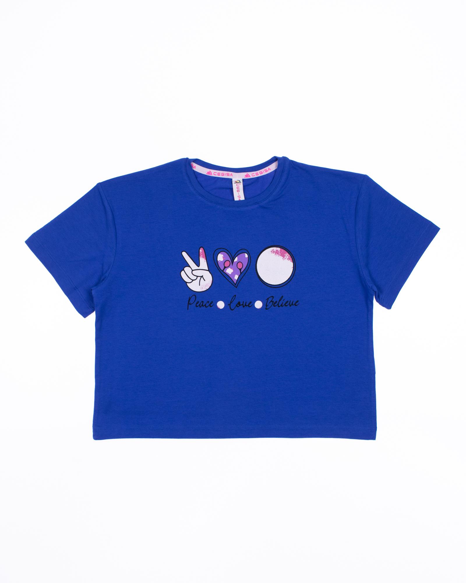 Футболка Cegisa для девочки оптом, выполнена из высококачественного материала кулирка с добавлением эластана. Приятная на ощупь ткань футболки с принтом не потеряет свой первоначальный вид после множества стирок. Футболка на девочку хорошо пропускает воздух и не закатывается. Модель укороченная не сковывает движения и комфортна в носке. Стильная и милая дизайнерская печать прекрасно дополнит образ. Футболка  отлично подходит для повседневной носки, физкультуры или дома.
