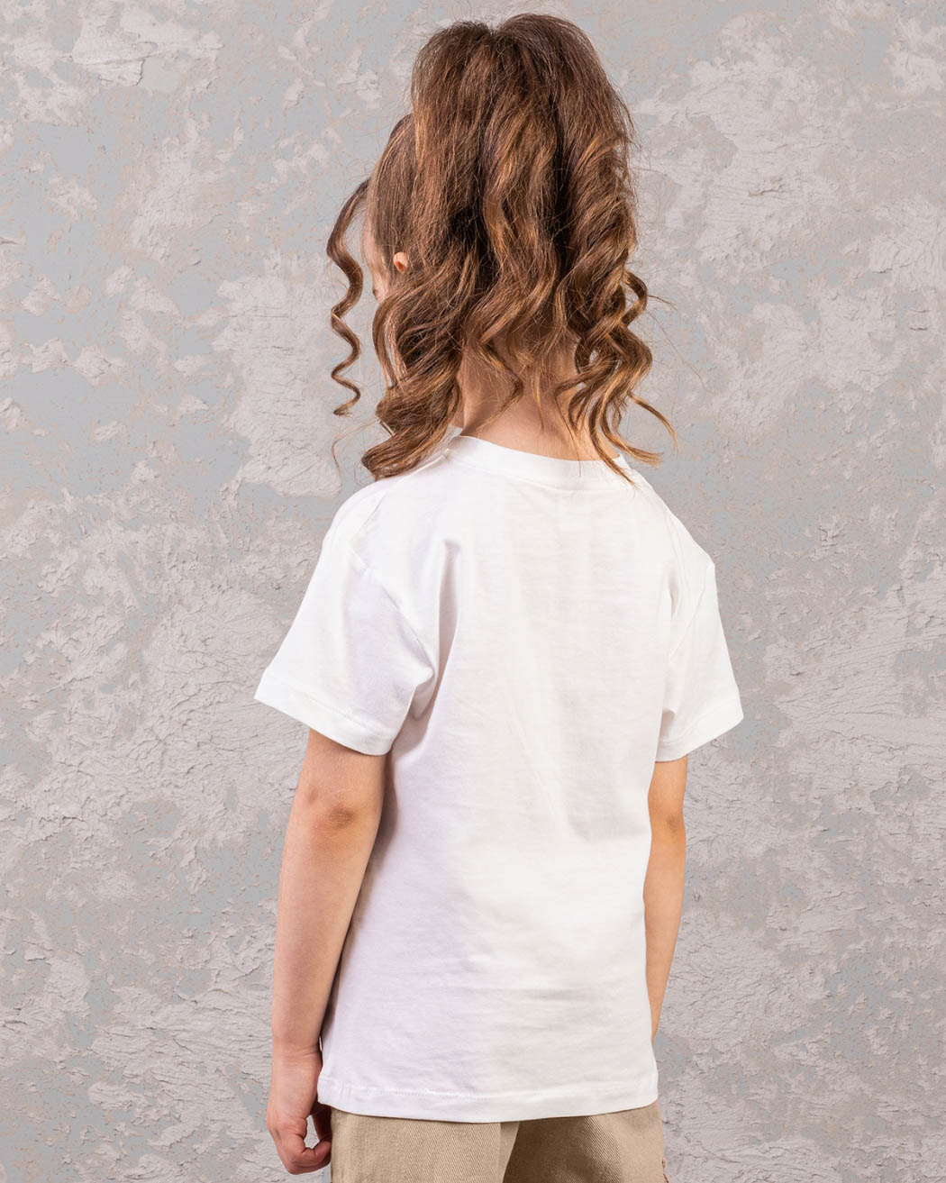 Футболка детская с принтом, незаменимая вещь в гардеробе ребенка. Прямой крой, округлый вырез горловины . Футболка для девочек сшита из кулирной глади. Состав 100% качественный хлопок, без добавления синтетических нитей. Подойдет для детского сада, на праздник и как повседневный вариант.