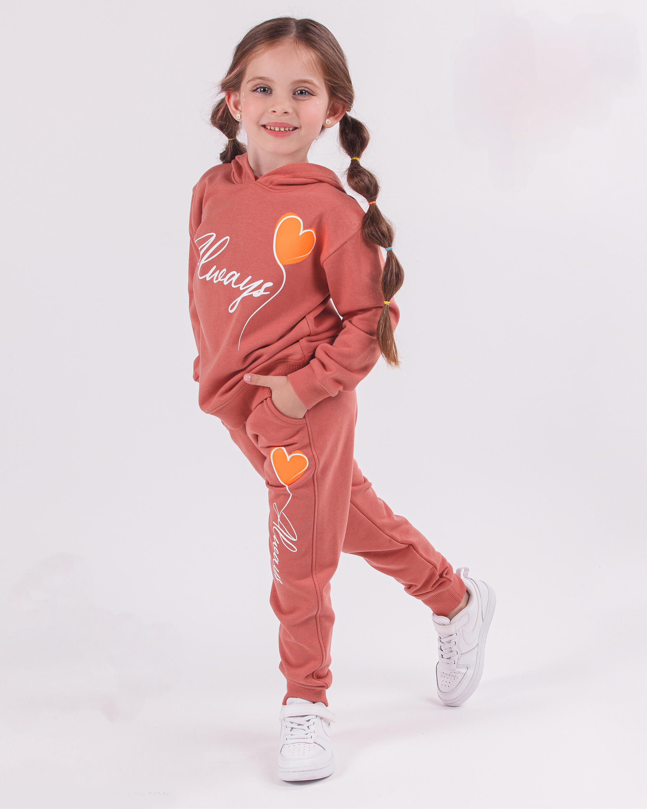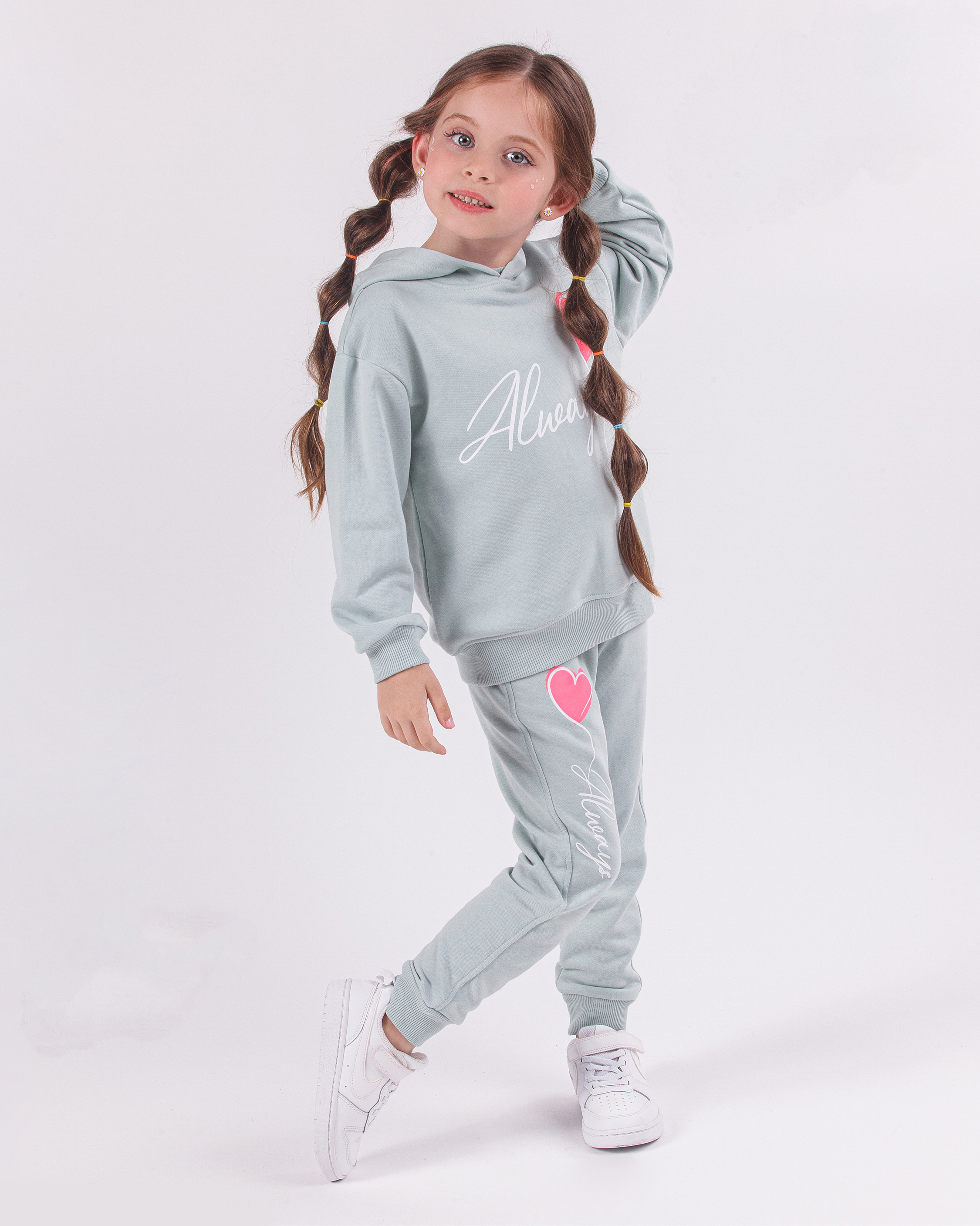 Базовый однотонный спортивный костюм Dmb оптом для девочки из  футера без начеса . Комплект одежды состоит из худи  и брюк-джоггеров. Такой костюм станет отличным дополнением гардероба любой девочки как для повседневной носки, так и для занятий спортом, бегом, для физкультуры в школе, а также будет уютным, мягким домашним нарядом в прохладное время года!