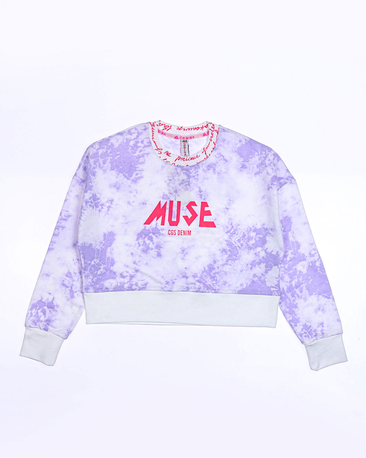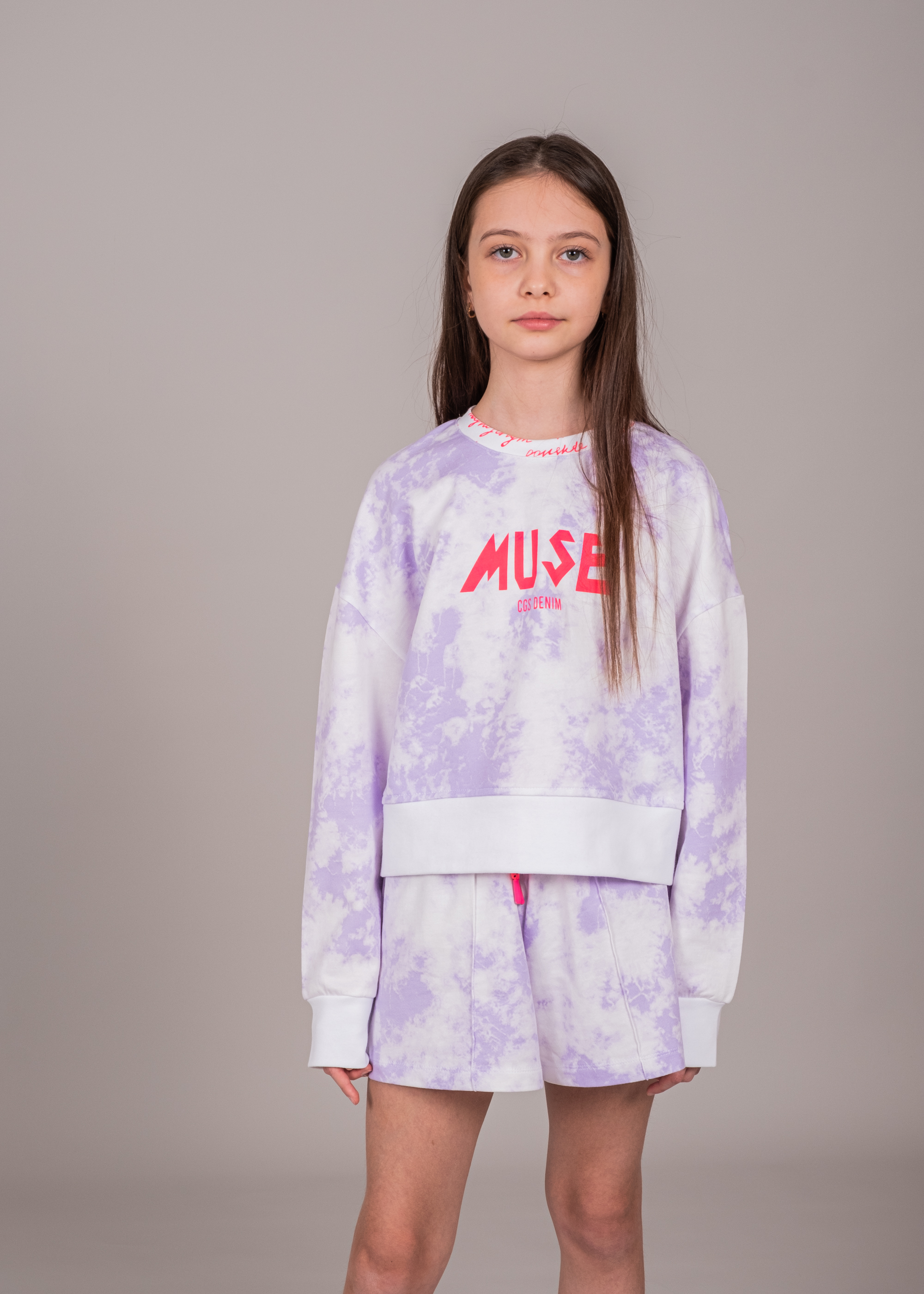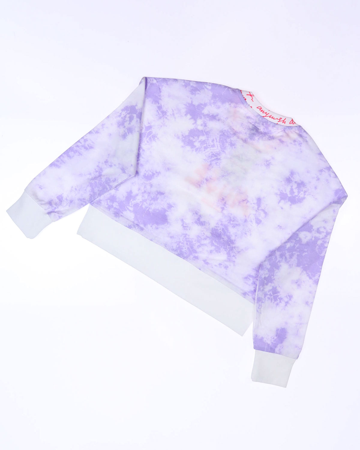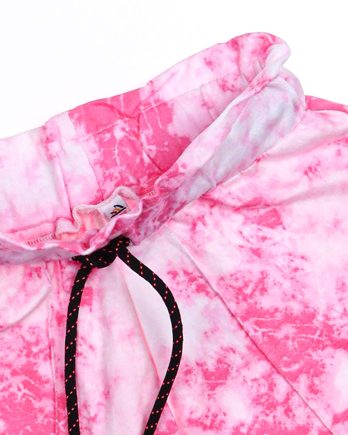 Трикотажный костюм из хлопка, выполнен из футера и украшен принтом тай дай.