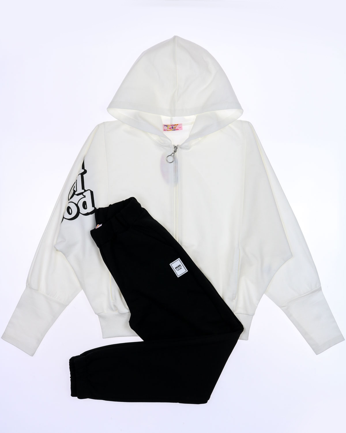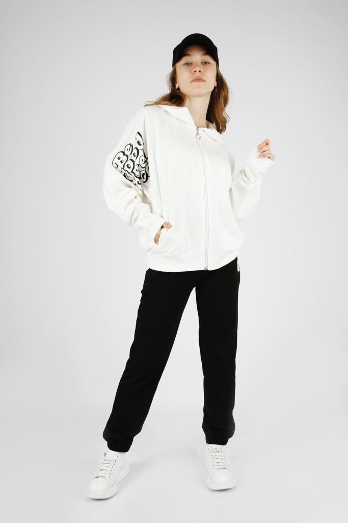 Комфортный и красивый костюм для девочки оптом. Куртка застегивается на молнию,по бокам два кармана, рукава- летучая мышь. Брюки умеренного объема, прямые на манжетах.