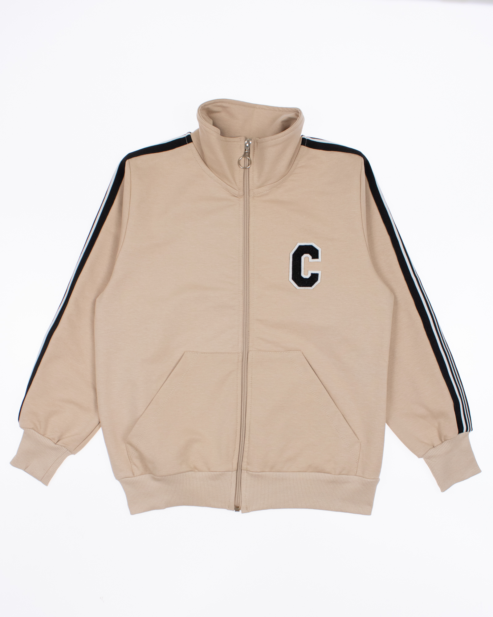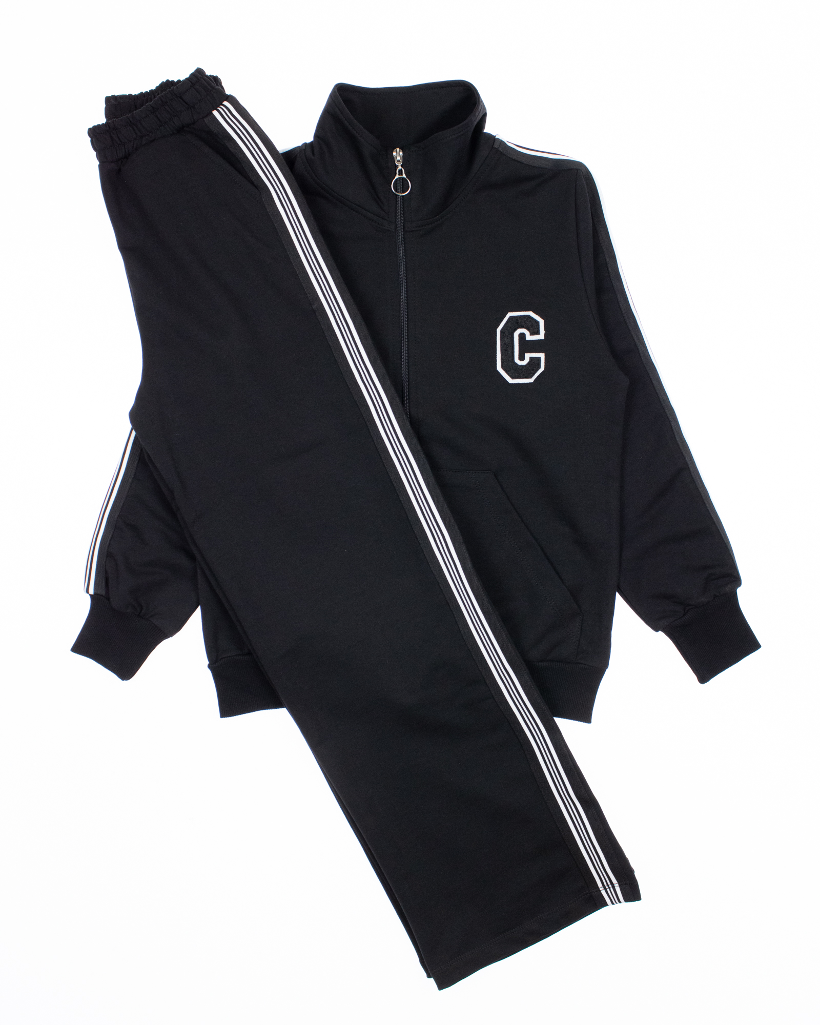 Костюм Teto для девочки оптом выполнен из трикотажа футер, крой свободный. Толстовка без капюшона, застегивается на молнию. Брюки прямые на резинке с карманами по бокам. Комфортный костюм на каждый день в сдержанных цветах.