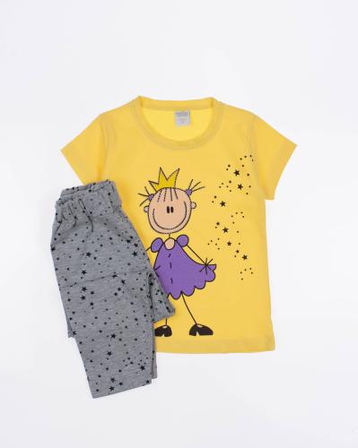 Практичный костюм TMK для девочки оптом состоит из футболки и бридж. Горловина футболки обработана эластичной бейкой. Лосины в поясе на резинке.  Костюм изготовлен из трикотажа кулирка - нежного и мягкого, гипоаллергенного и легкого в уходе. Модель прекрасно подойдет для повседневной носки на улице или дома, для детского сада, а так же для активного отдыха и занятий спортом.