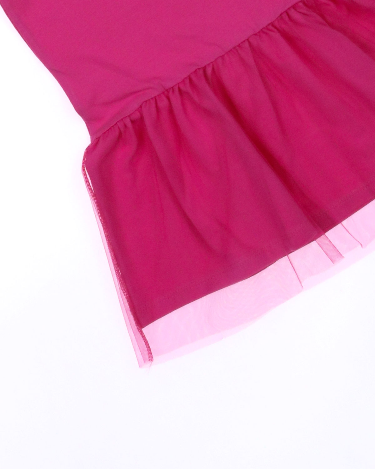 Туника YESMINA детская нужная вещь в гардеробе любой девочки. Футболка хлопковая декорирована принтом и отрезной юбкой с сеткой. Материал - плотное трикотажное полотно яркого цвета (95% хлопок 5% эластан). Ткань очень комфортна к телу и удобна в использовании, не теряет свои свойства даже после многократных стирок. Идеальна для детского сада, утренника, похода в гости, прогулок.