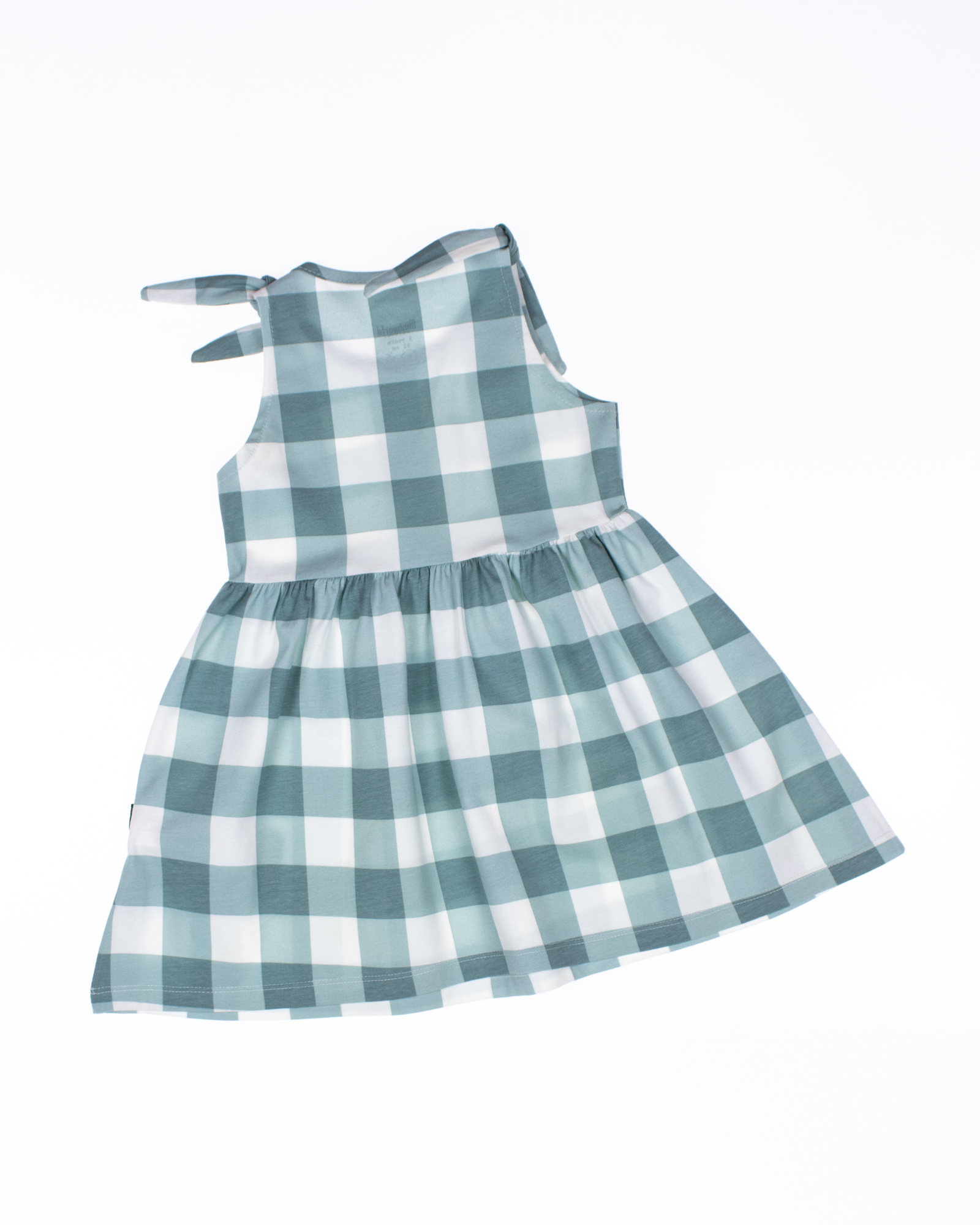 Летнее платье для девочки оптом, выполнено из эластичного хлопкового трикотажа. Платье без рукавов с декоративными завязками на плечах, расклешенное снизу.