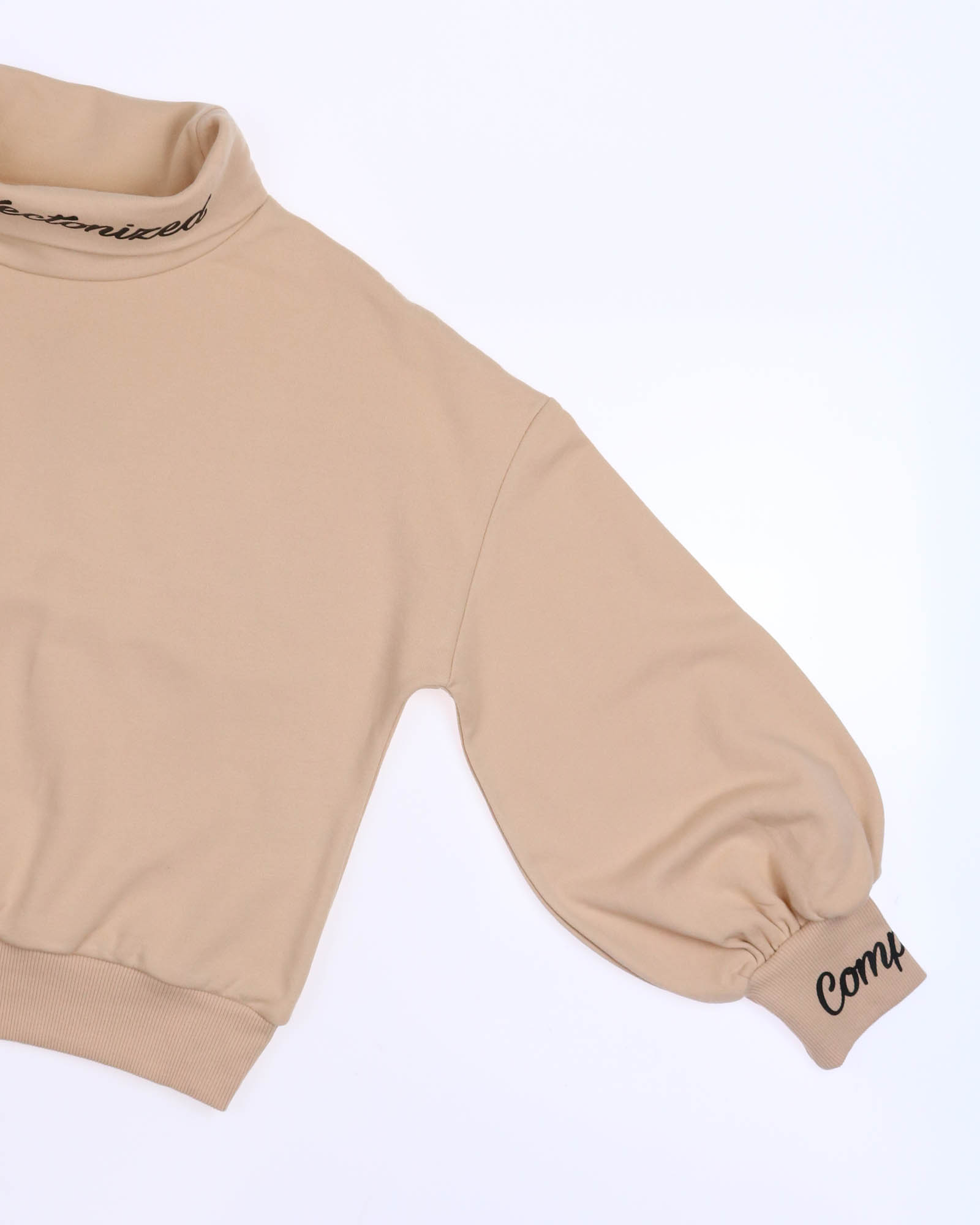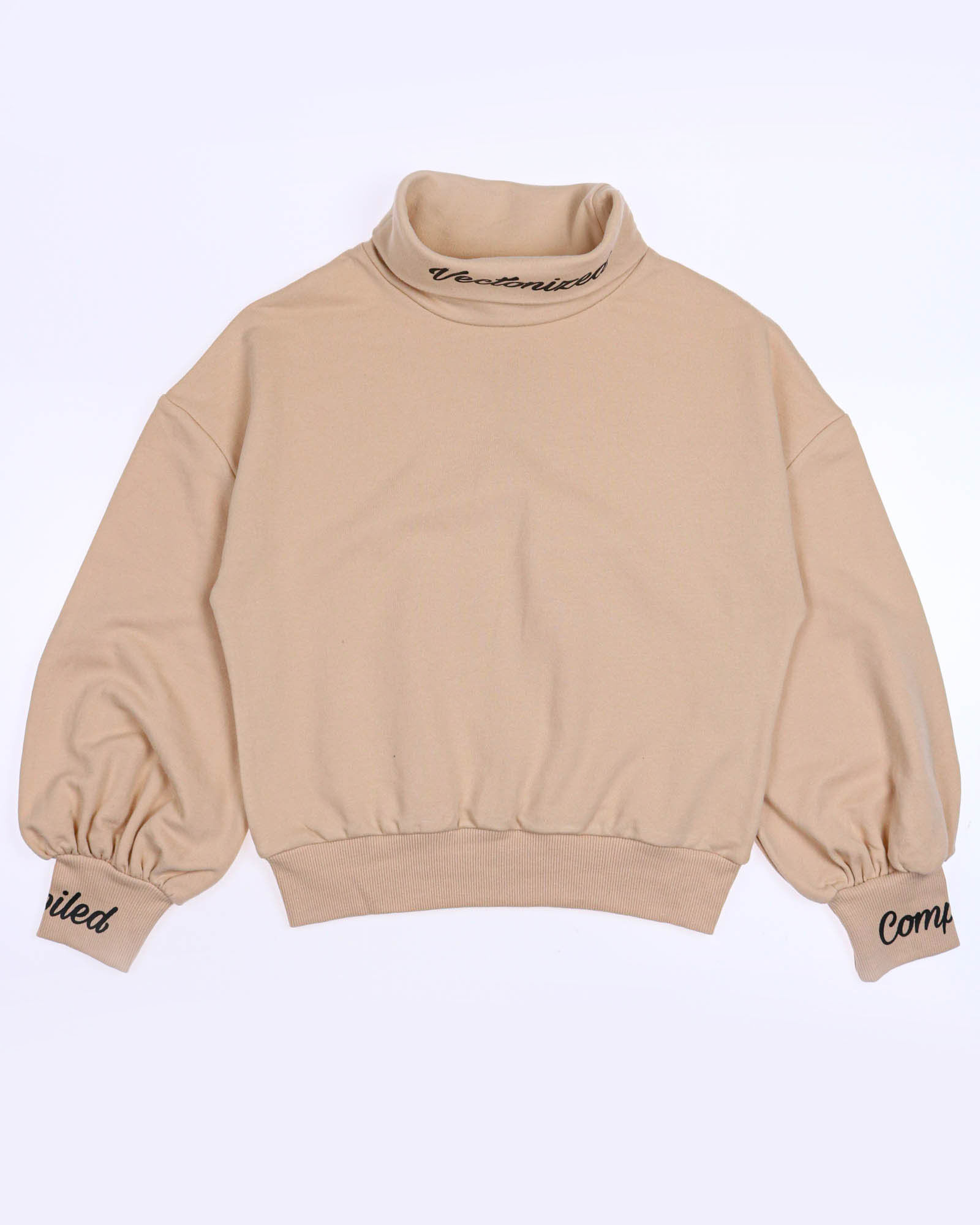 Свитшот для девочки выполнен из высококачественного и мягкого трикотажного полотна - футер (петля). Принт мягкий, выдерживает большое колличество стирок. Объемные рукава собраны в эластичные манжеты, линия плеча спущена.