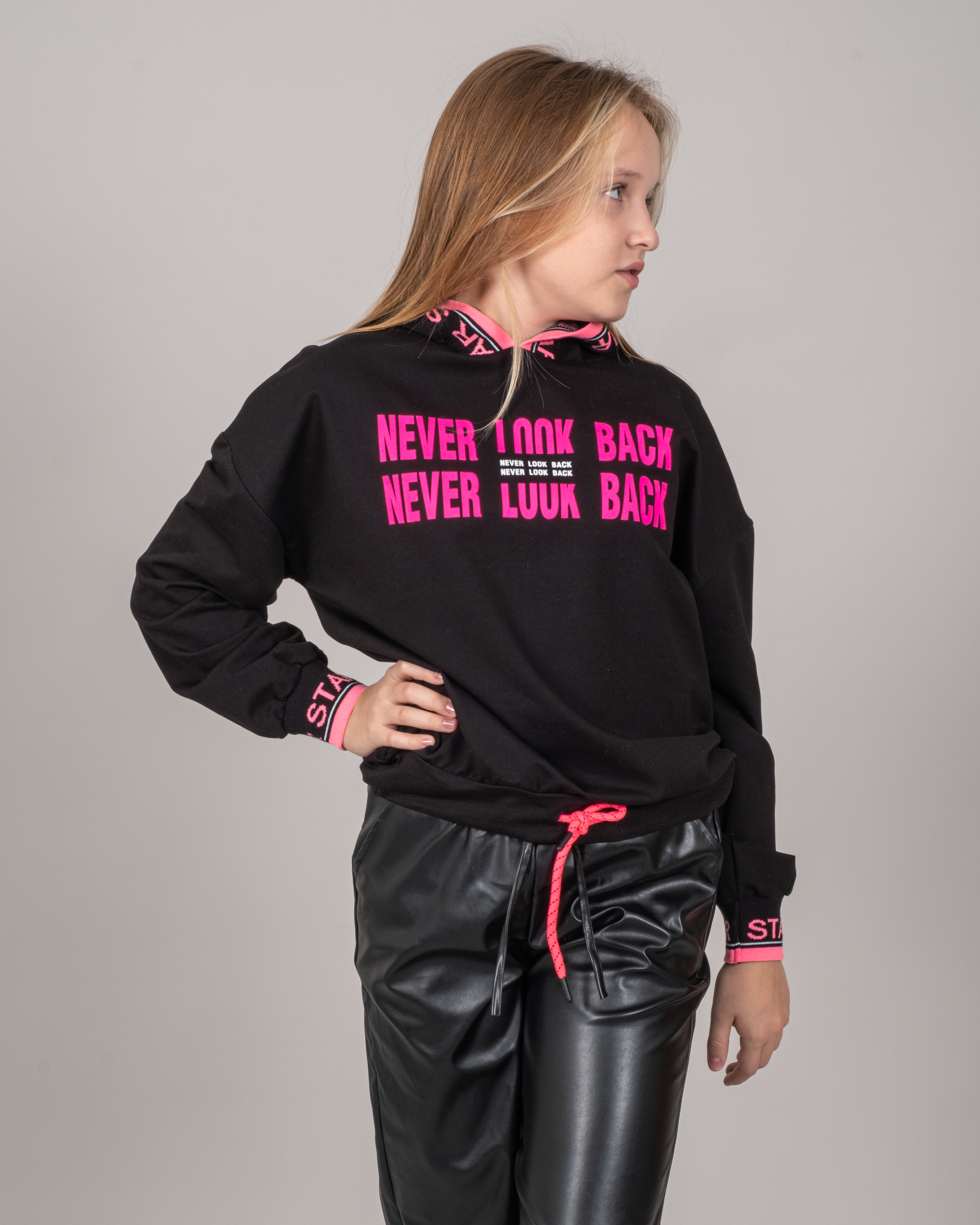 Худи для девочки выполнено из трикотажа - футер (петля).