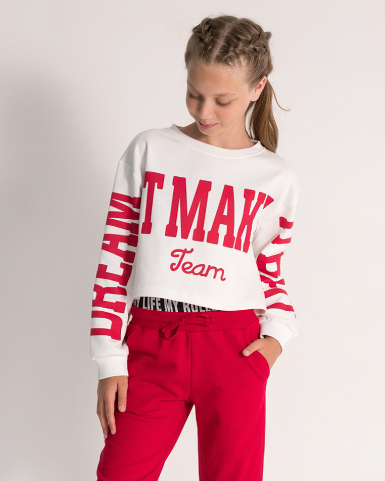Детский свитшот DMB – это отличный выбор для оптовых закупок. Укороченная модель выполнена из трикотажа футер (петля), что обеспечивает комфорт и приятное ощущение на коже. Стильный и модный дизайн с принтом на груди делает свитшот привлекательным для детей и подростков.