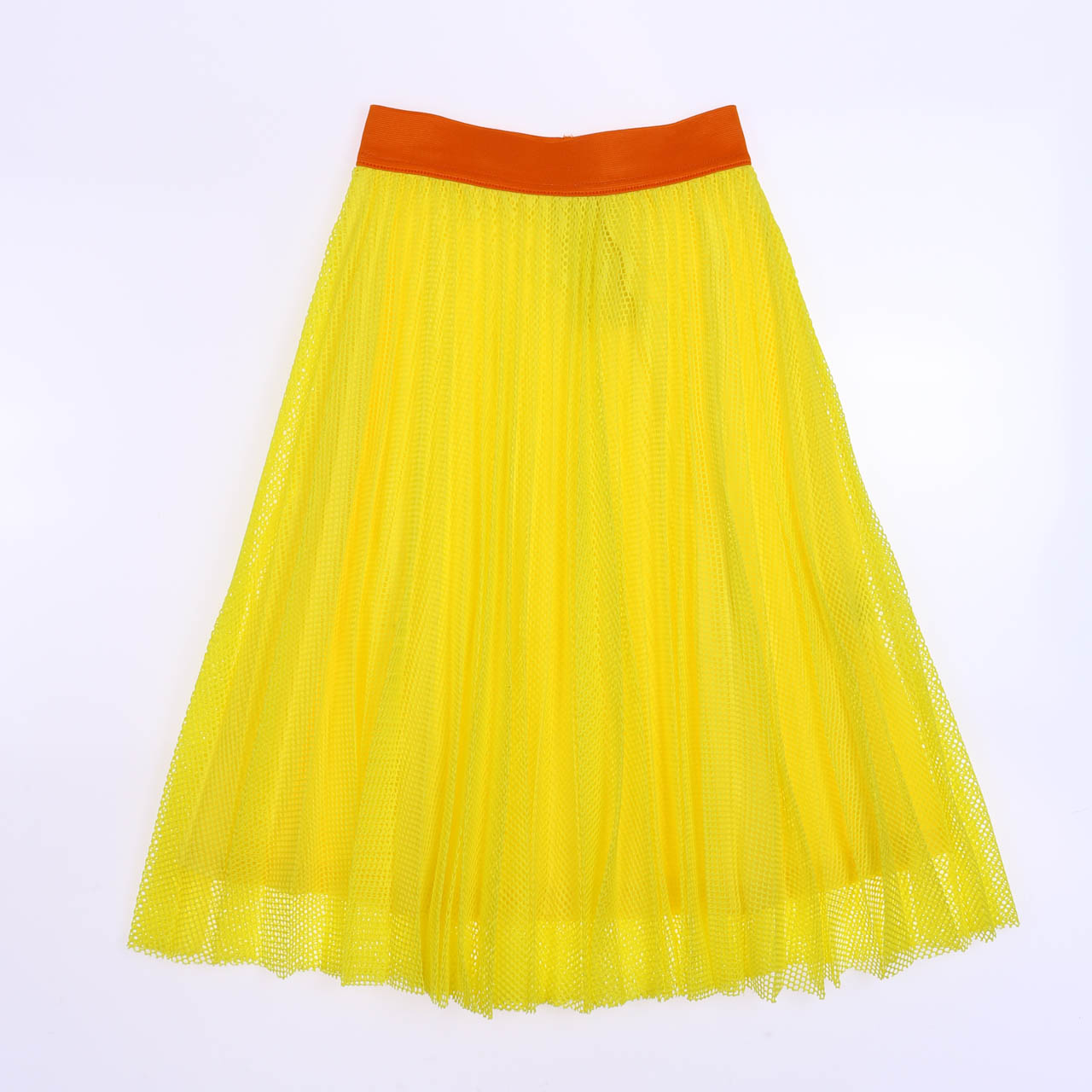 Летняя плиссе юбка DMB для девочки оптом. Юбка выполнена из трикотажной сетки на подкладе, пояс на широкой резинке.