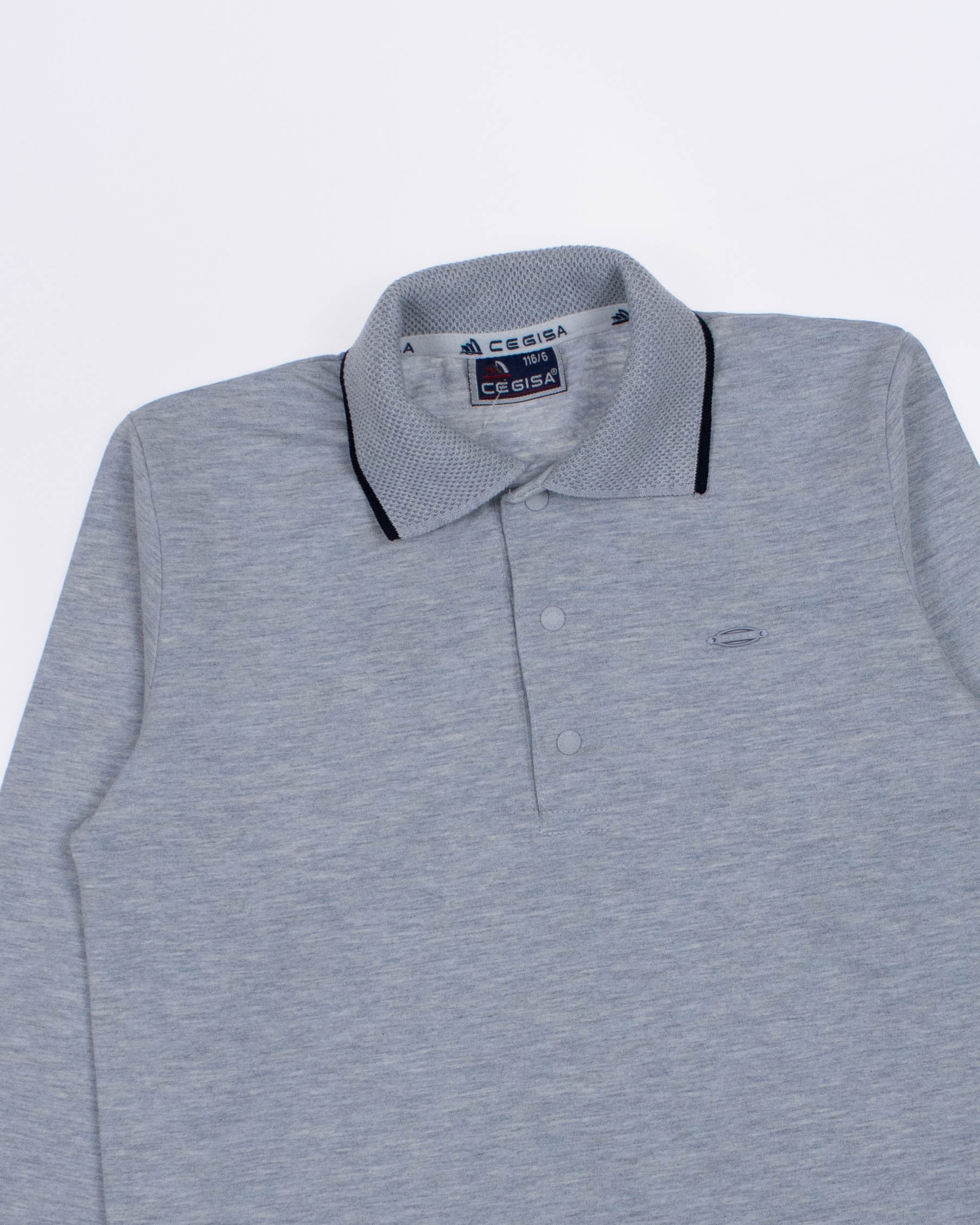 Детское однотонное поло Cegisa для мальчика оптом. Поло прямого силуэта имеет застежку- кнопки, вязаный отложной воротничок, рукава оформлены манжетами.