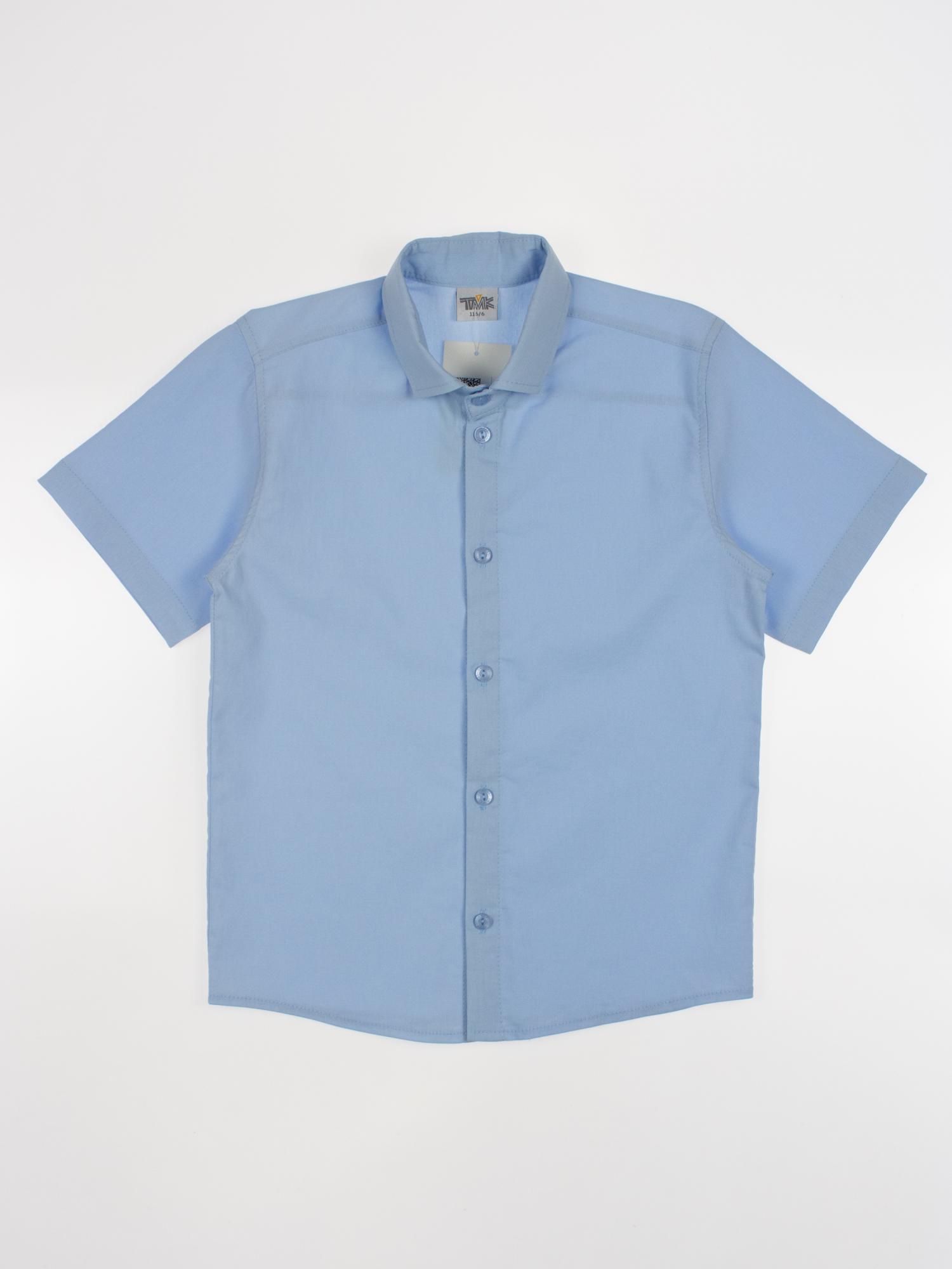 Детская однотонная рубашка для мальчиков оптом. Рубашка изготавлена из смесового материала высокого качества. Модель застегивается на пуговицы.