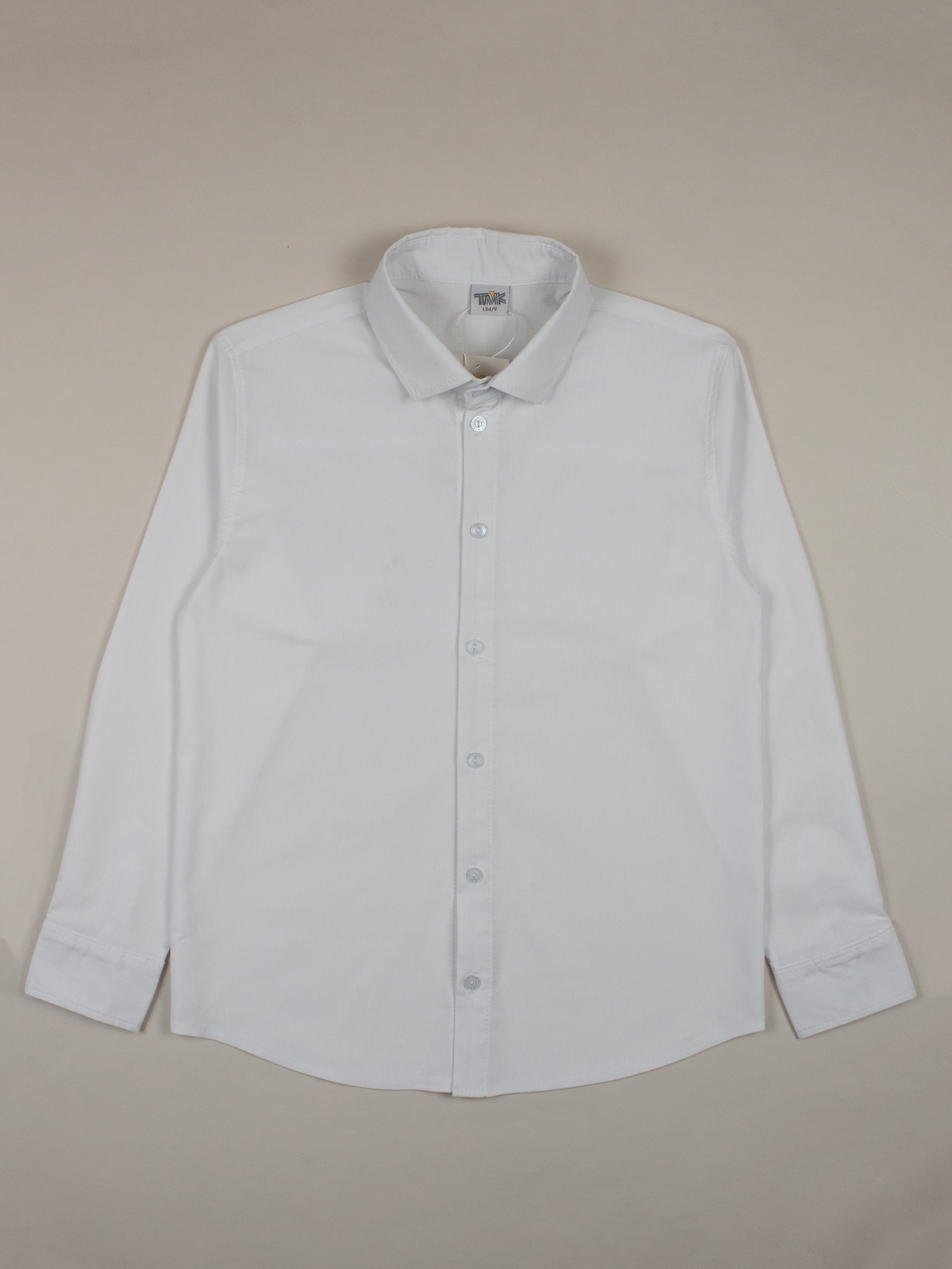 Детская однотонная рубашка для мальчика оптом. Рубашка изготавлена из смесового материала высокого качества. Модель застегивается на пуговицы.