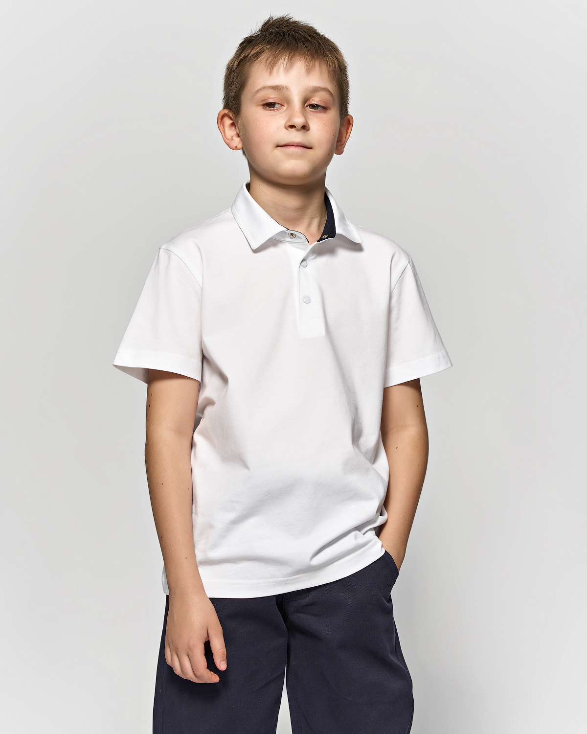 Однотонная рубашка- поло для мальчика Cegisa оптом. Поло прямого кроя с застежкой -кнопки. Изготовлена из натурального трикотажного хлопка. Модель с короткими рукавами пркрасный вариант для школы.