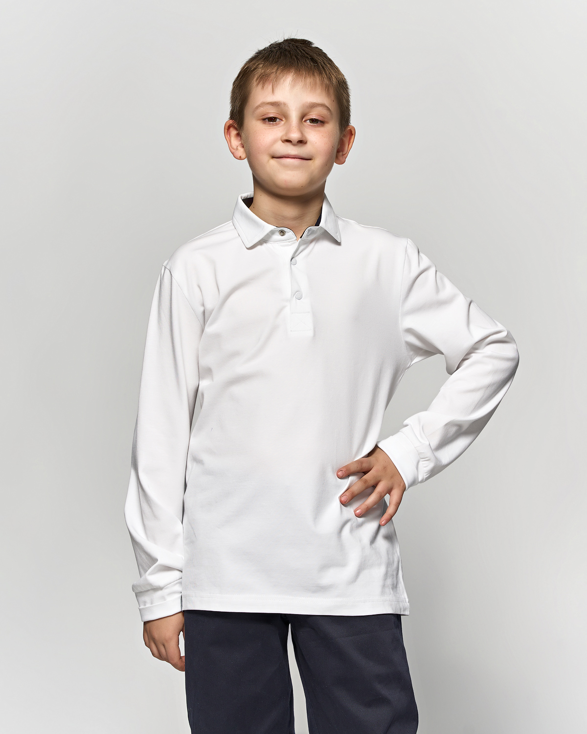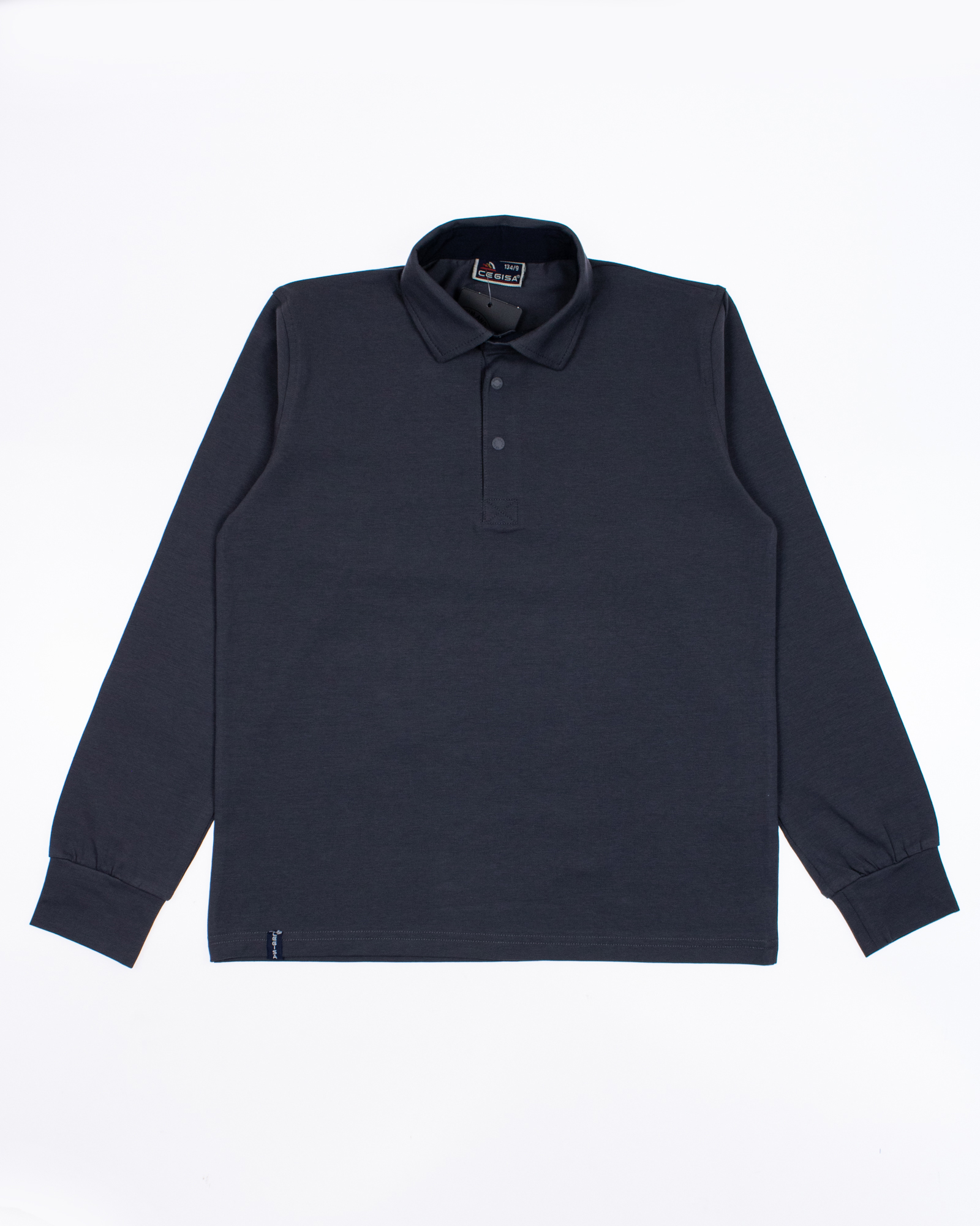 Однотонная рубашка- поло для мальчика Cegisa оптом. Поло прямого кроя с застежкой -кнопки. Изготовлена из натурального трикотажного хлопка. Модель с длинными рукавами пркрасный вариант для школы.