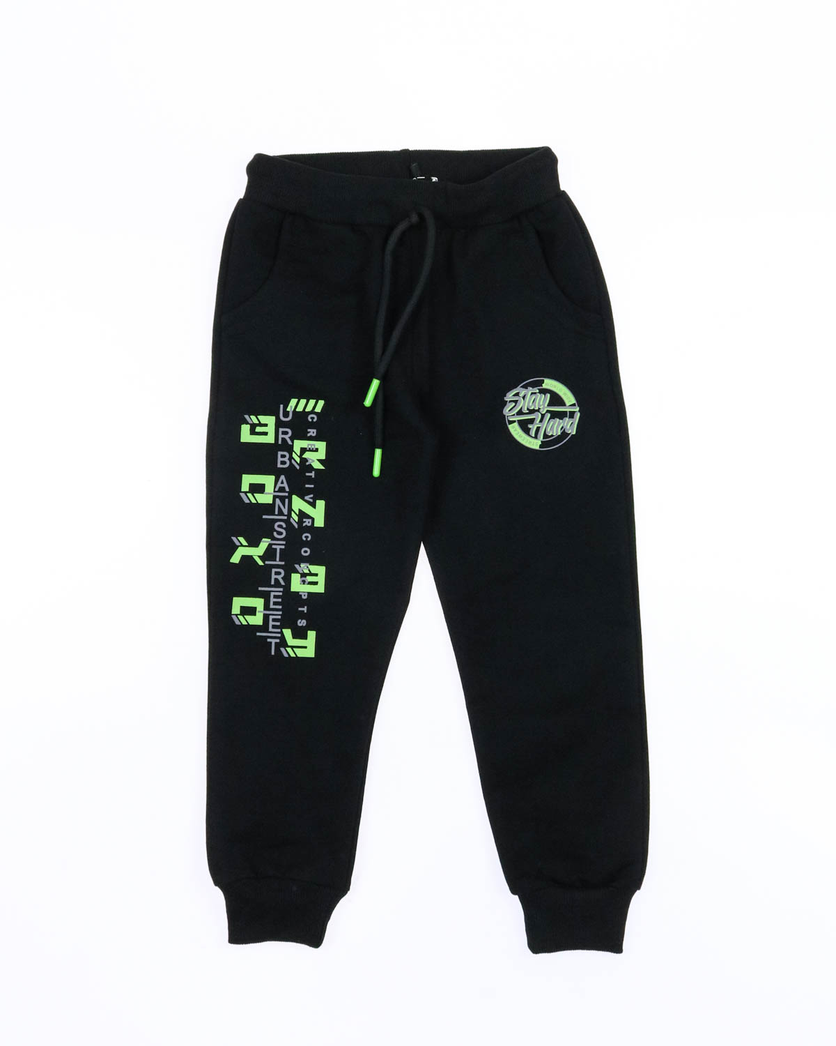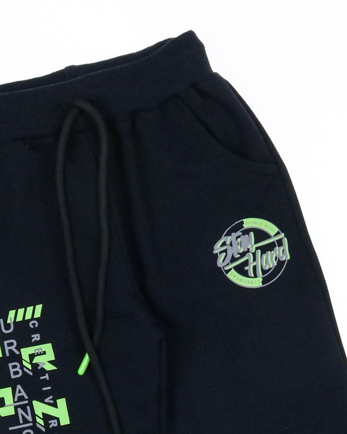 Однотонные брюки из трикотажа для мальчика, прямого силуэта, на притачном поясе с эластичной тесьмой и регулируемым шнуром спереди. Два боковых кармана, по низу брюк цельнокроеные манжеты с эластичной тесьмой.