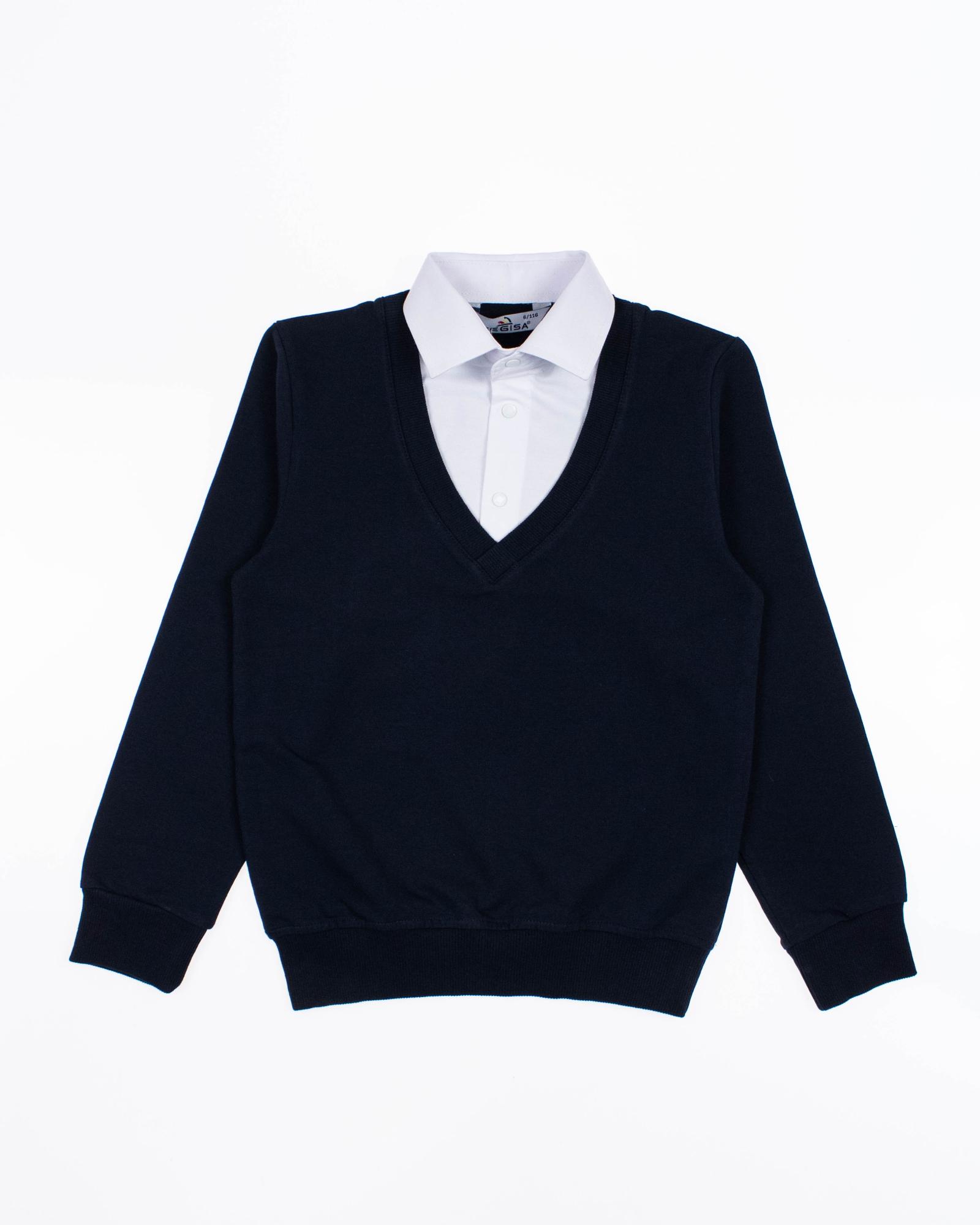 Школьный джемпер-обманка CEGISA для мальчика оптом с имитацией рубашки выполнен из качественного хлопкового трикотажа. Ворот сшит из рубашечной хлопковой ткани, застежка-кнопки. Джемпер-обманка выглядит как полноценный комплект рубашки и джемпера. Мальчик будет всегда опрятен в школе, сохраняя при этом официальный дресс-код. Качество наших изделий подтверждают многократные стирки в стиральной машине, при которых джемпер-обманка сохраняет прежний вид, без деформации и окрашивания рукавов или ворота. Торговая марка CEGISA представляет большой ассортимент качественной, красивой, классической школьной и спортивной одежды турецкого производства для детей и подростков.
