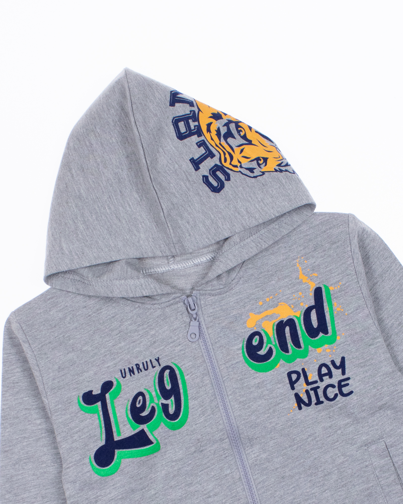 Толстовка  UNRULY для мальчика оптом, выполнена из мягкого трикотажа футер (петля). Глубокий капюшон, рукава и низ изделия оформлены манжетами, застегивается  на молнию.