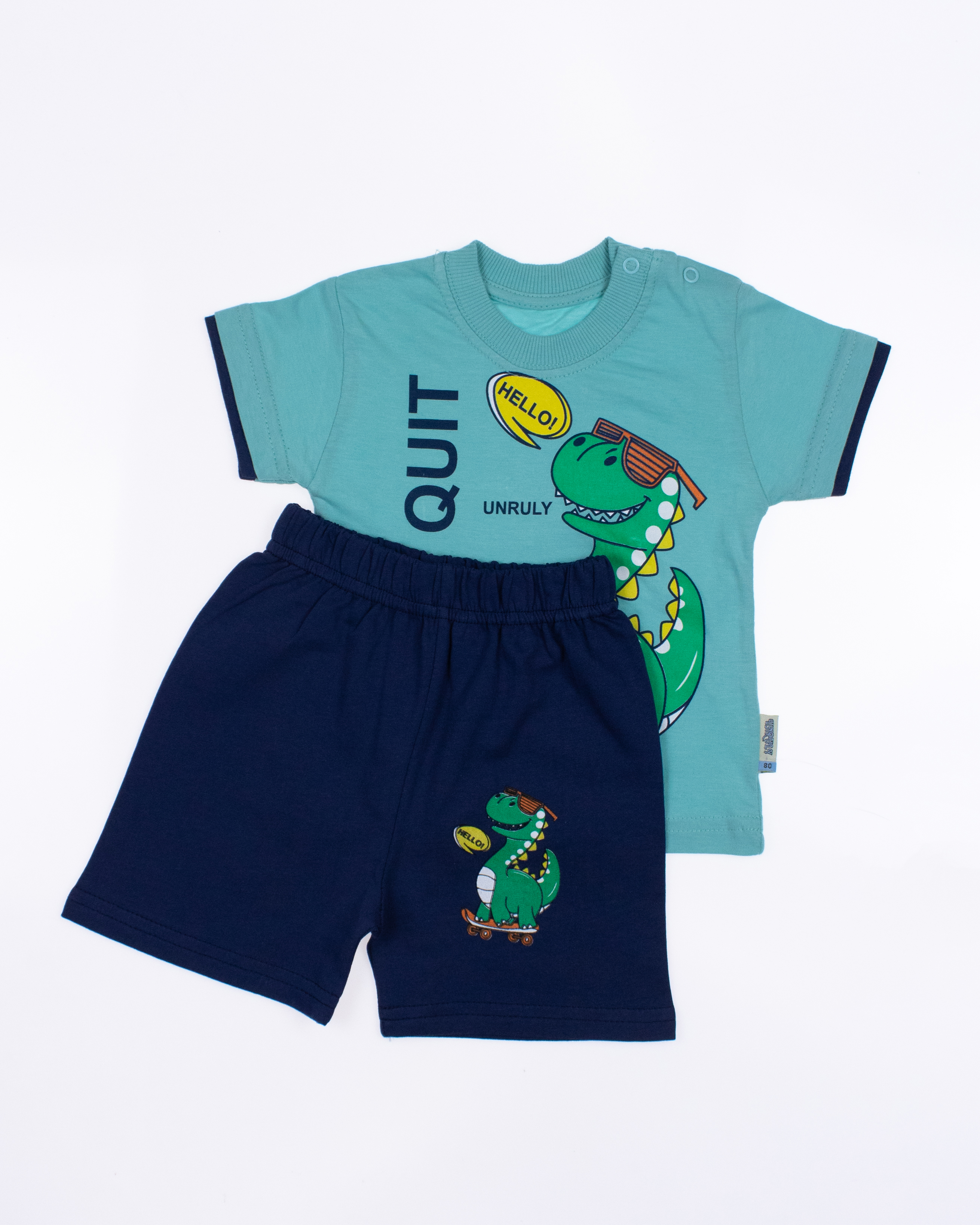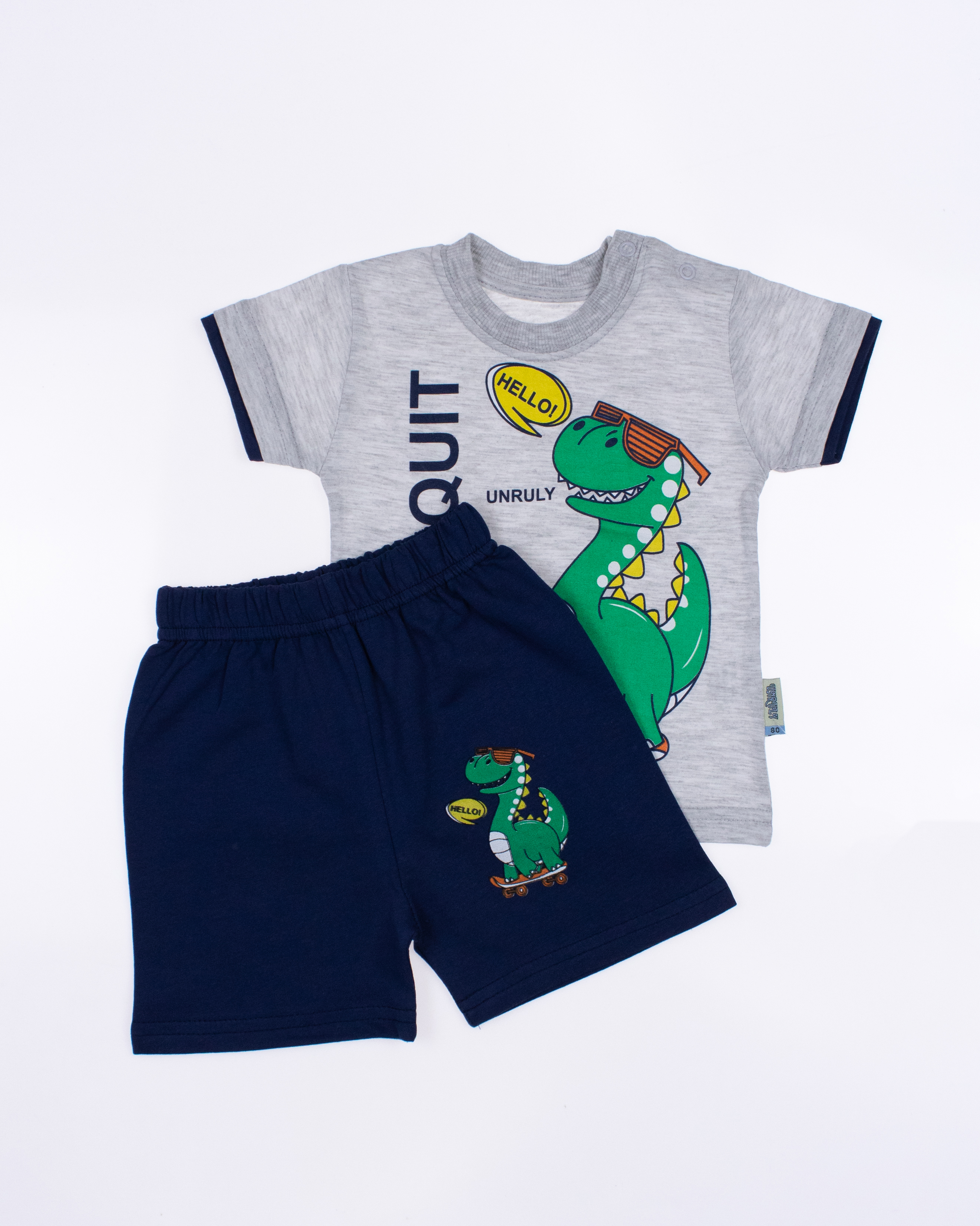 Детский костюм UNRULY выполнен из хлопкового полотна и оформлен печатным принтом. Футболка прямого кроя, с округлым вырезом горловины. Шорты умеренного объема, без карманов.