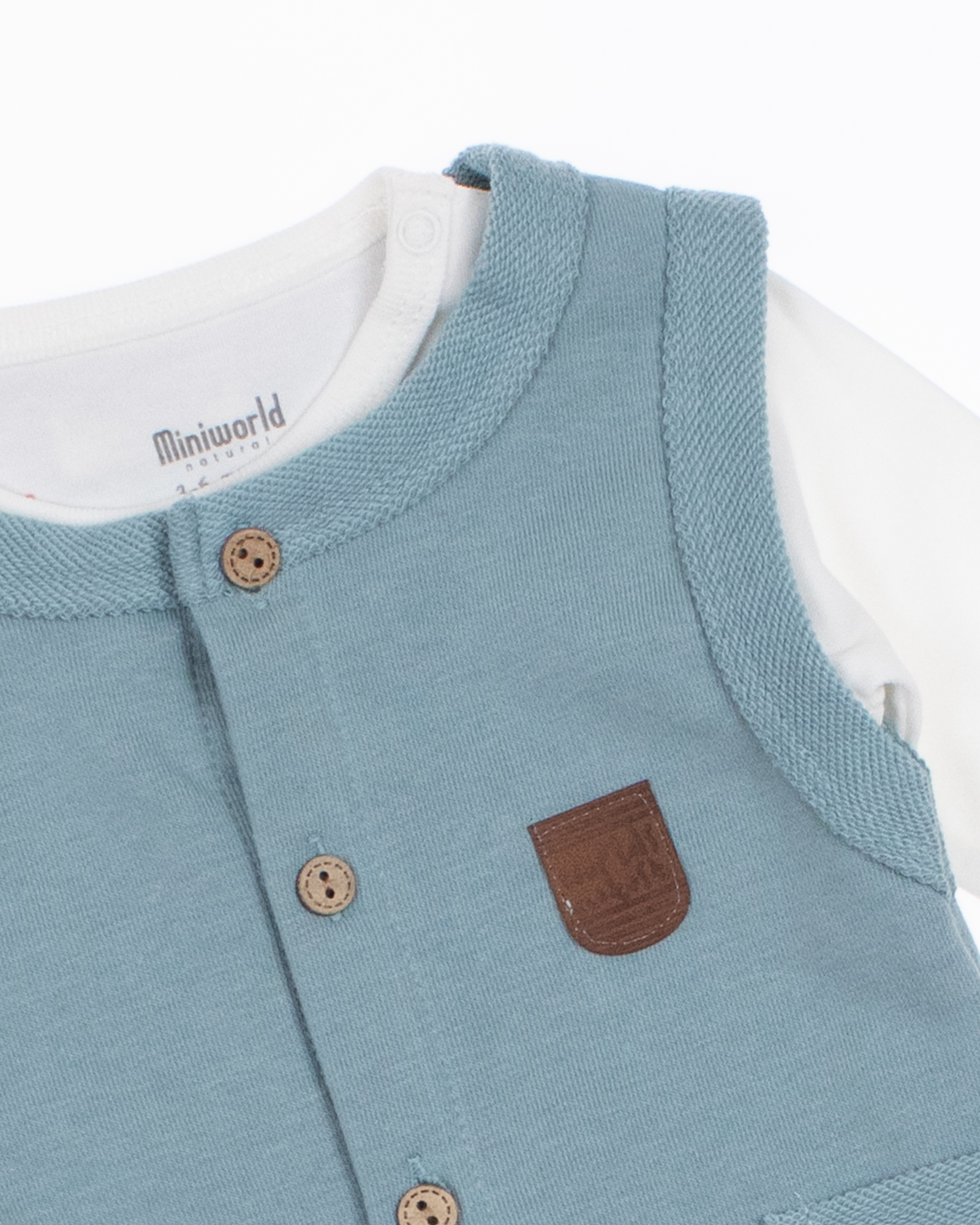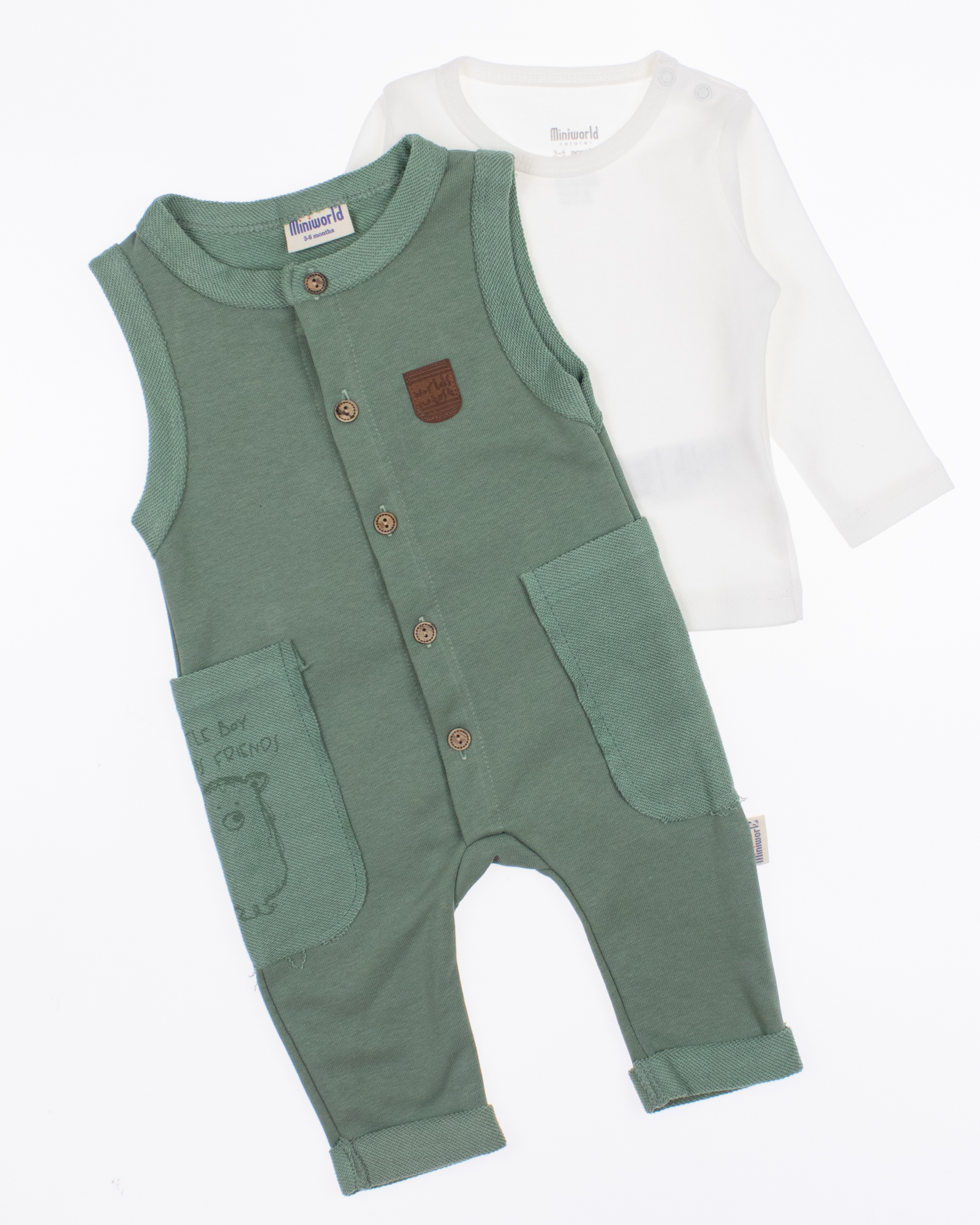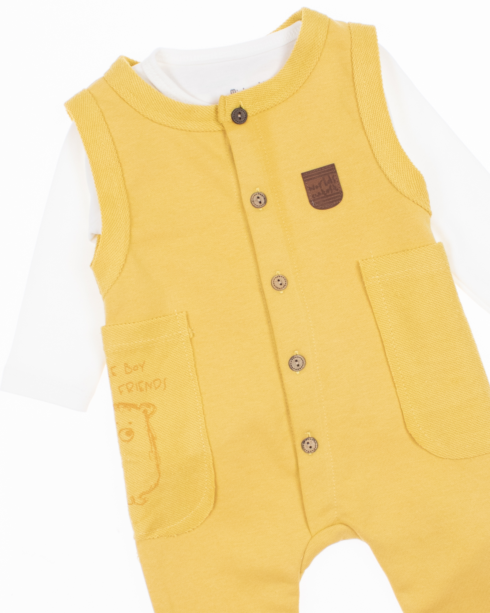 Ясельный костюм с длинными рукавами оптом - комплект, который подойдет малышам с самых первых дней жизни. Комбинезон для новорожденного очень удобен, выполнен из трикотажа, застегивается на пуговицы.