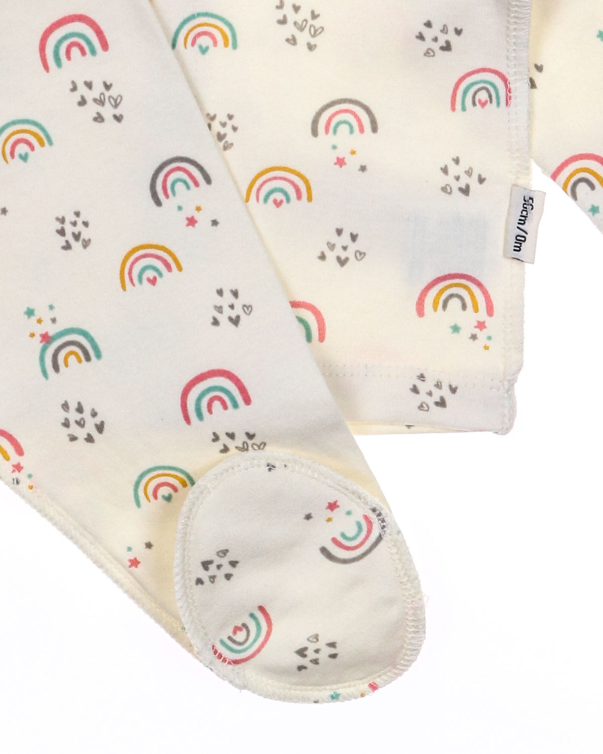 Костюм для новорожденных с антицарапками. Распашонка застегивается на кнопки, закрытые ручки-рукав трансформер, швы наружные. Штанишки с закрытыми ножками.
