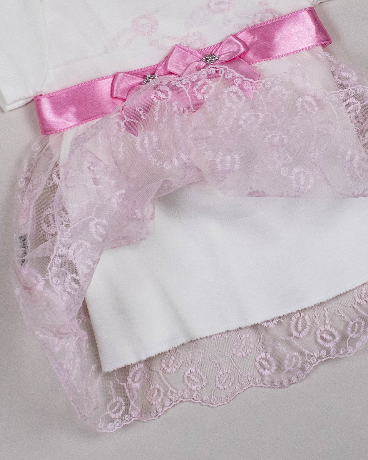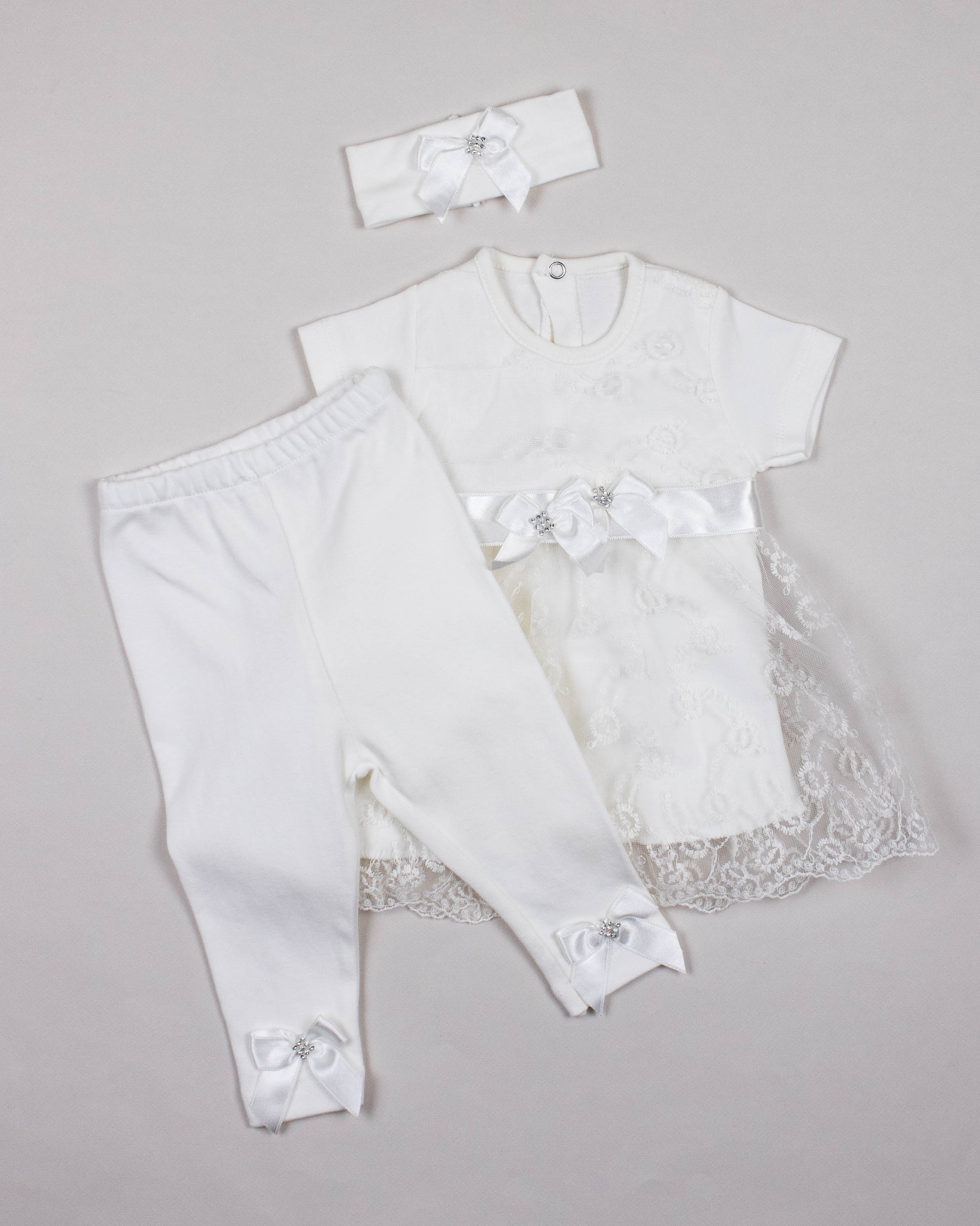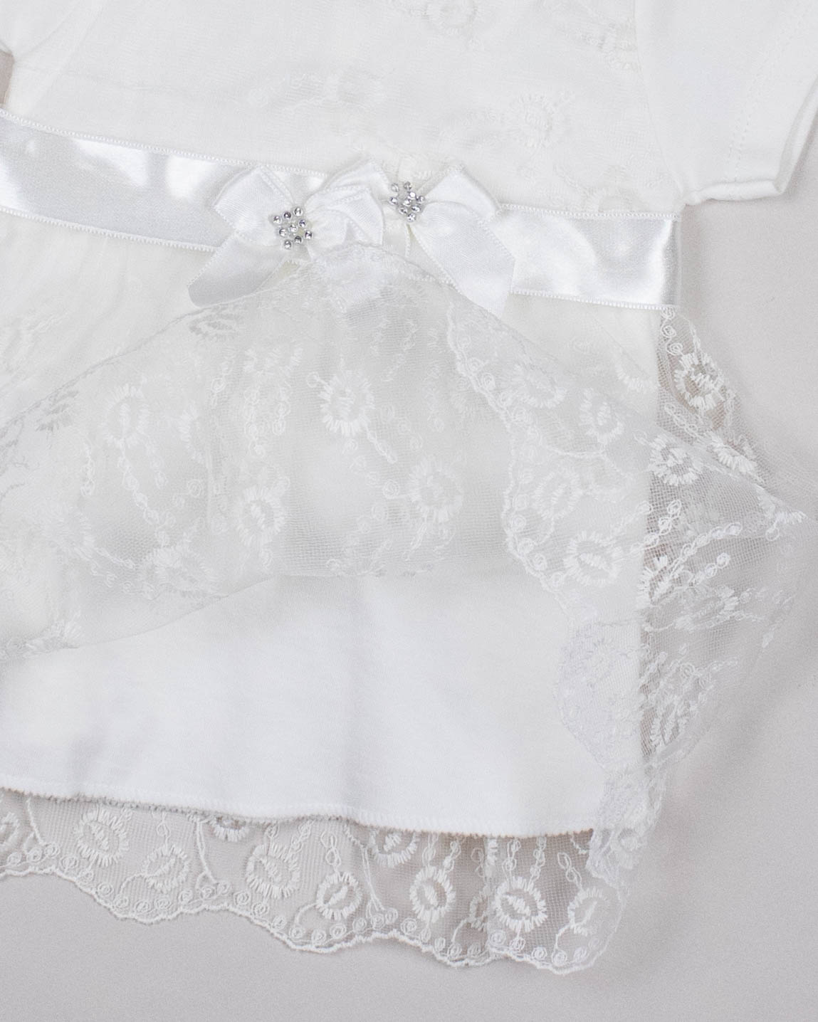 Комплект FINDIK оптом для новорожденного изготовлен из 100% хлопка с отделкой из сетки с вышивкой и декором из страз.