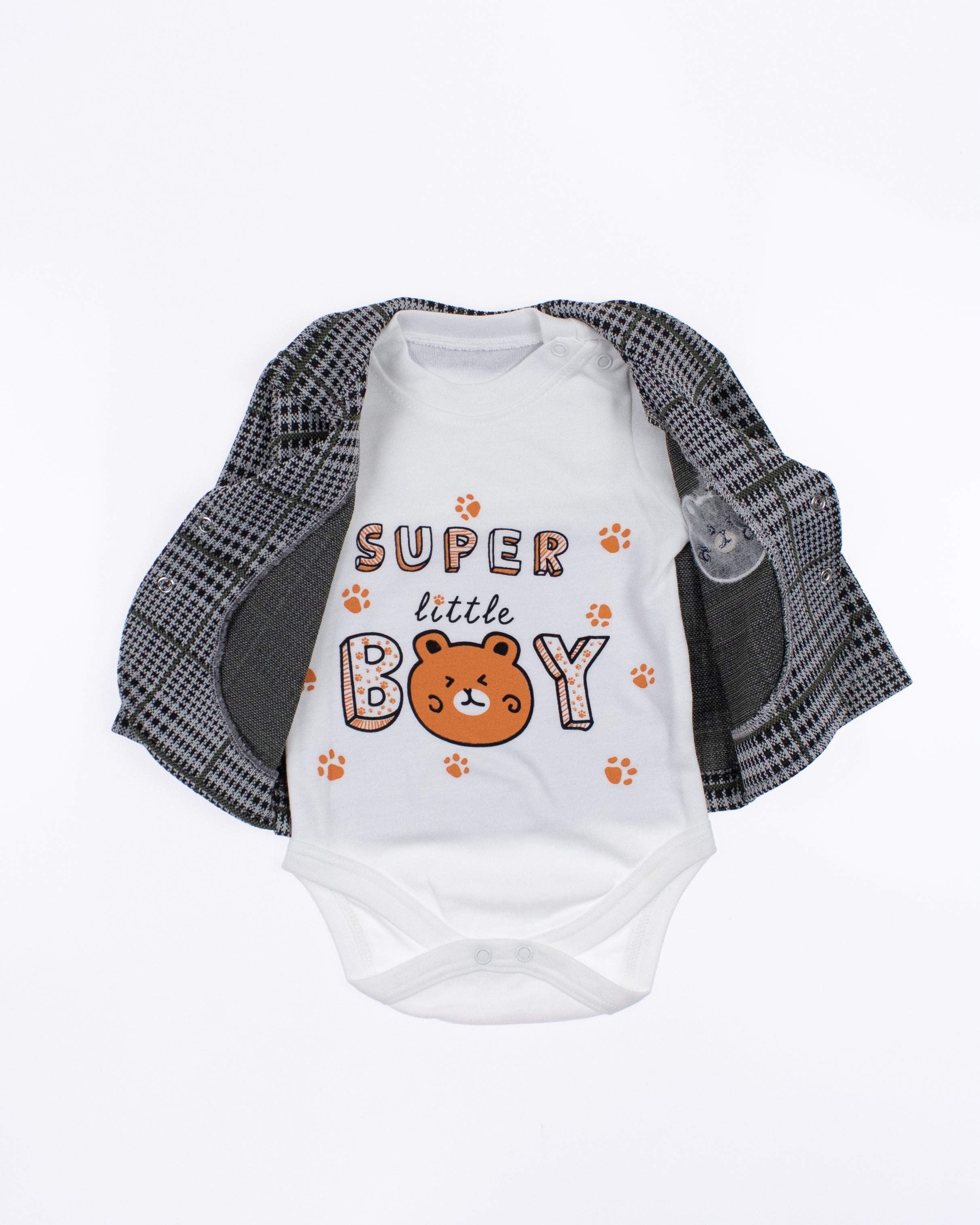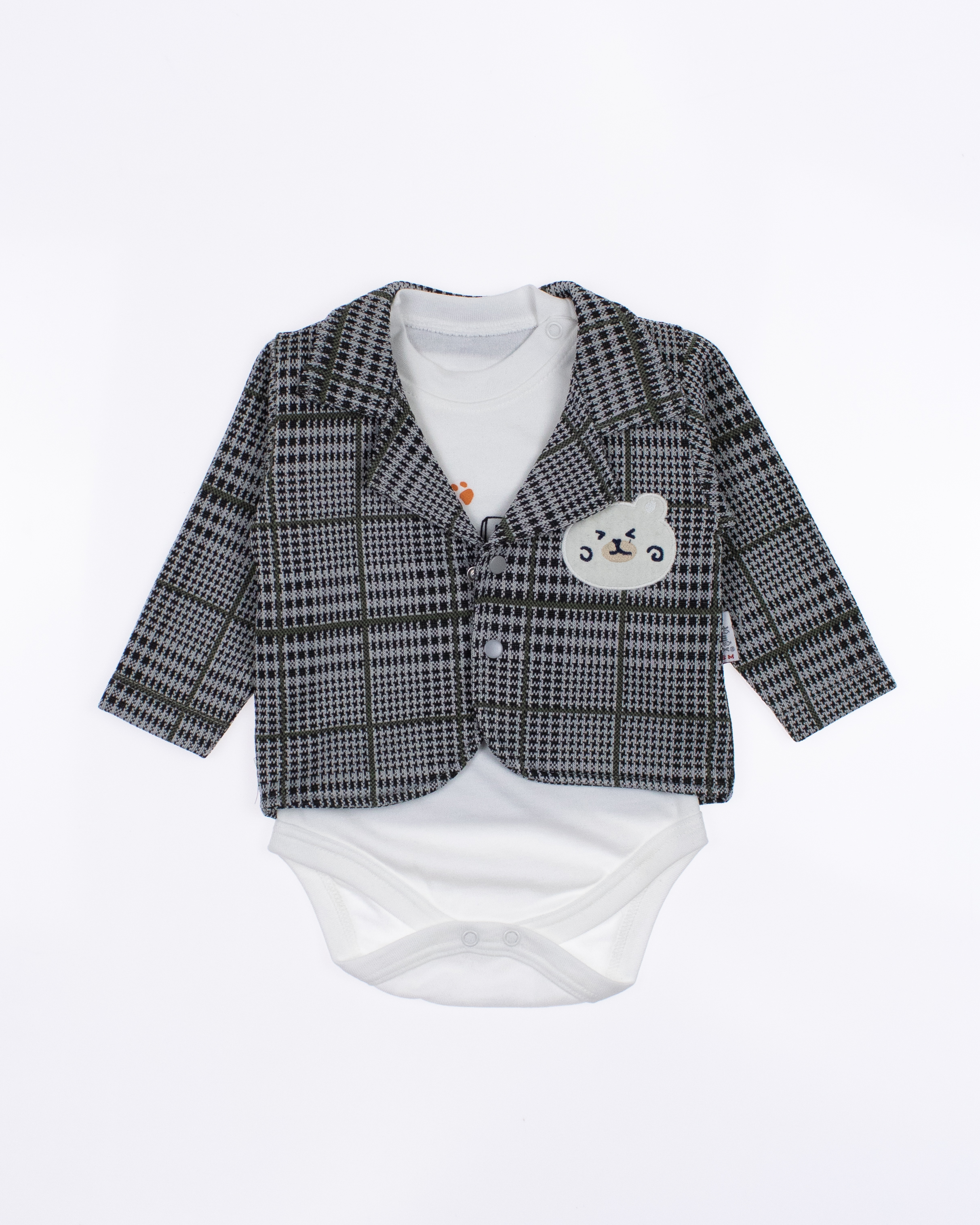 Костюм ясельный от MODIMIX - идеальный выбор для самых маленьких модников! В комплект входит три незаменимых предмета: трикотажный пиджак, стильные штанишки и практичное боди с длинным рукавом. Все изделия выполнены из качественных и гипоаллергенных материалов, что обеспечивает комфорт и безопасность для чувствительной кожи малышей. Производитель MODIMIX, завоевавший доверие родителей своим вниманием к деталям и высоким стандартам качества, гарантирует долговечность и привлекательный внешний вид его продукции. Костюм отлично подходит  для особых случаев. Интернет-магазин Tamrikoshop предлагает этот замечательный товар по оптовым ценам, что делает его доступным для всех желающих. Не упустите возможность порадовать своего малыша стильной и удобной одеждой! Заходите на сайт, чтобы выбрать свой идеальный комплект и сделать покупку с выгодой!