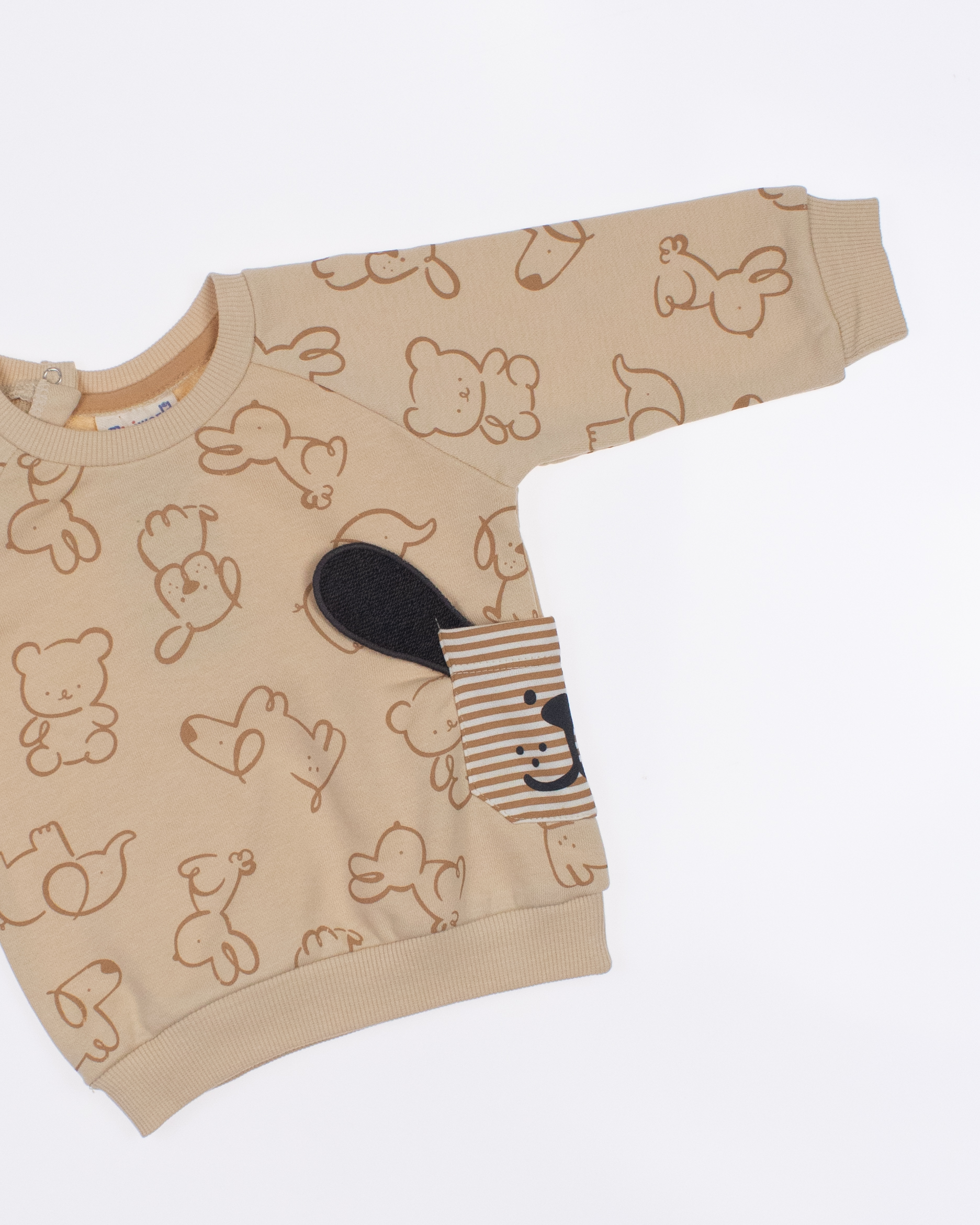 Мы предлагаем оптовые продажи детской одежды производства Турция. Хлопковый костюм  MINIWORLD выполнен из футера (петля), что гарантирует комфорт и безопасность для самых маленьких детей. Свитшот имеет удобную застежку-кнопки на плече, что облегчит процесс надевания и снятия одежды. Штанишки с мягкими манжетами на эластичном поясе идеально подходят для ношения с подгузником, обеспечивая свободу движений и комфорт. Детский милый принт на костюме поможет развить фантазию и воображение ребенка, делая его образ ярким и запоминающимся. Костюм MINIWORLD - отличный выбор для маленьких модников и их заботливых родителей. Не упустите возможность приобрести этот уникальный товар оптом по выгодной цене!