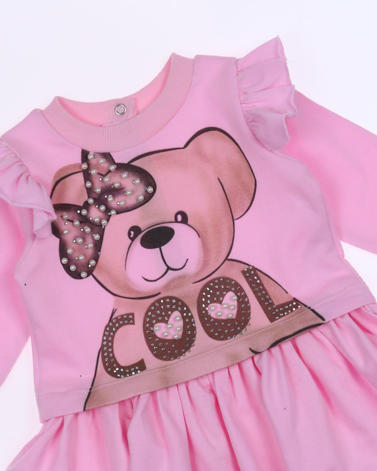 Трикотажное платье с длинными рукавами. Мягкий, нежный и приятный трикотаж не оставит равнодушной ни одну заботливую маму. Модный и стильный рисунок обязательно понравится малышу. Платье свободного кроя,застегивается на кнопки, не ограничивает движения, а его дополнительной изюминкой являются крылышки на рукавах, которые придают платью еще большую легкость и воздушность.
