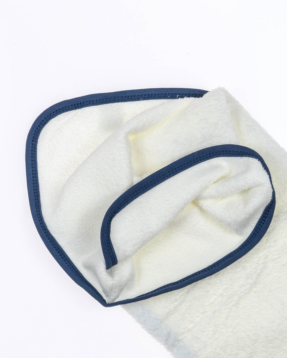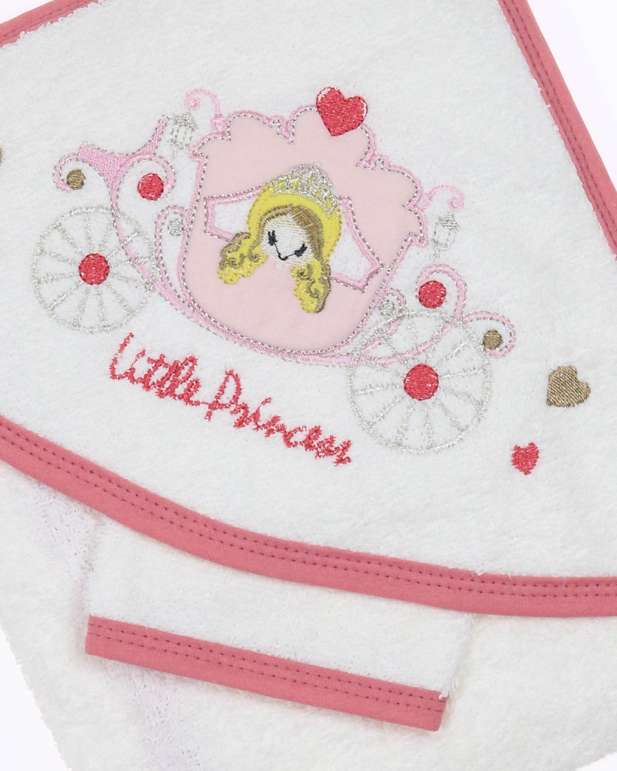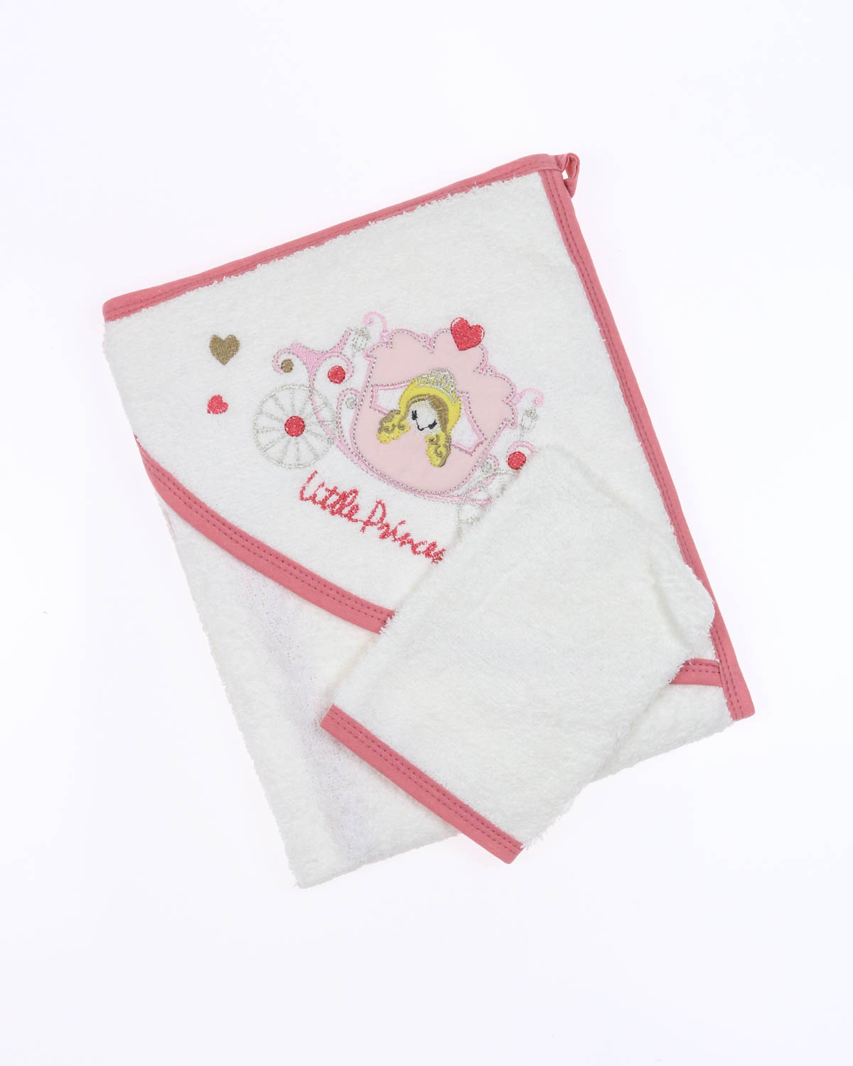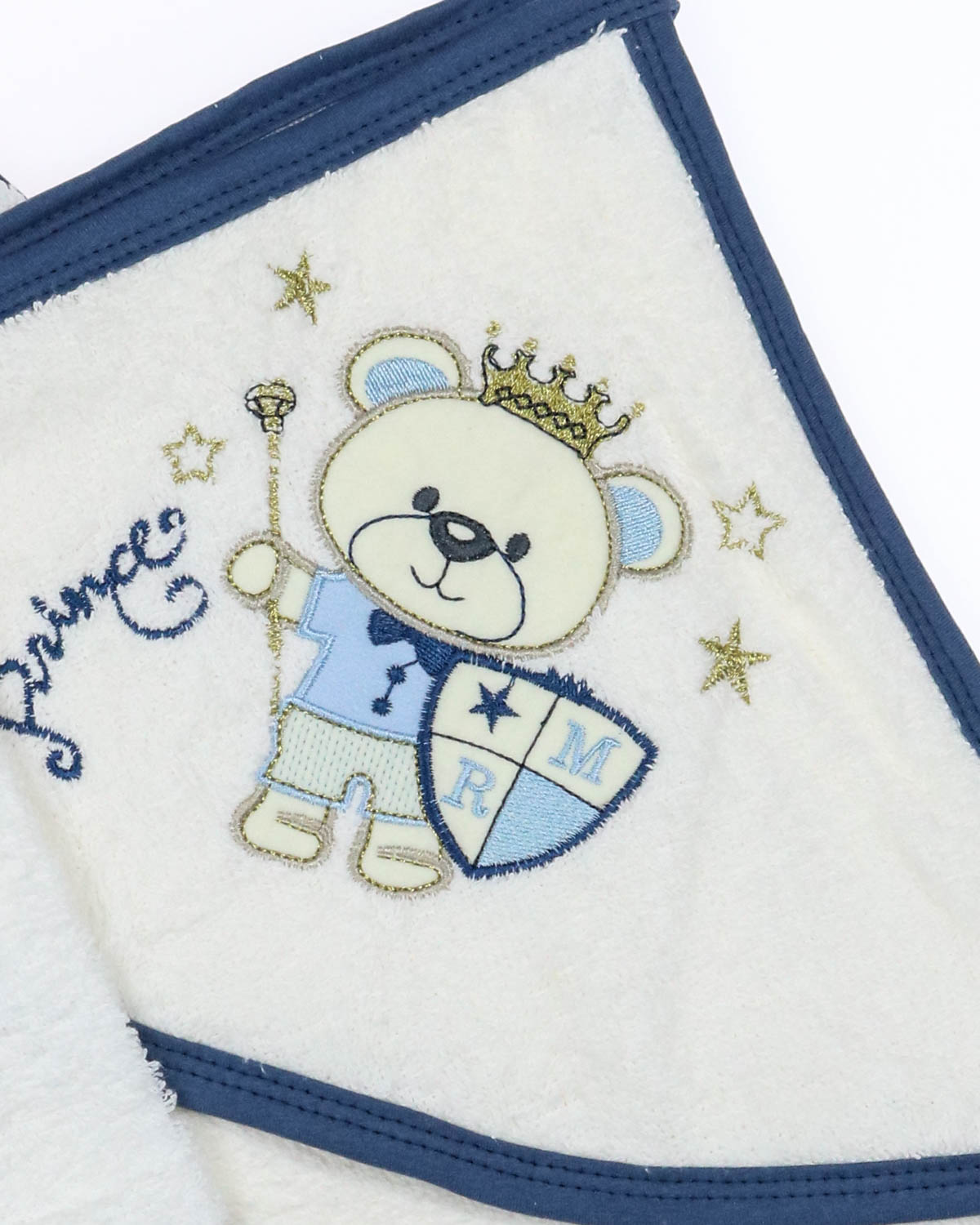 Полотенце с капюшоном и рукавица, позволяет вытирать ребенка после купания так, чтобы его головка всегда оставалась в тепле. Благодаря петельке - детское полотенце с капюшоном легко повесить сушиться, а варежкой можно вытереть ребёнка после кормления, а также утром после крепкого сна. Детское полотенце из махровой ткани приятное на ощупь, отлично впитывает влагу и быстро сохнет. Капюшон декорирован милейшей аппликацией и вышивкой. Края детского полотенца обработаны хлопковой трикотажной окантовкой.