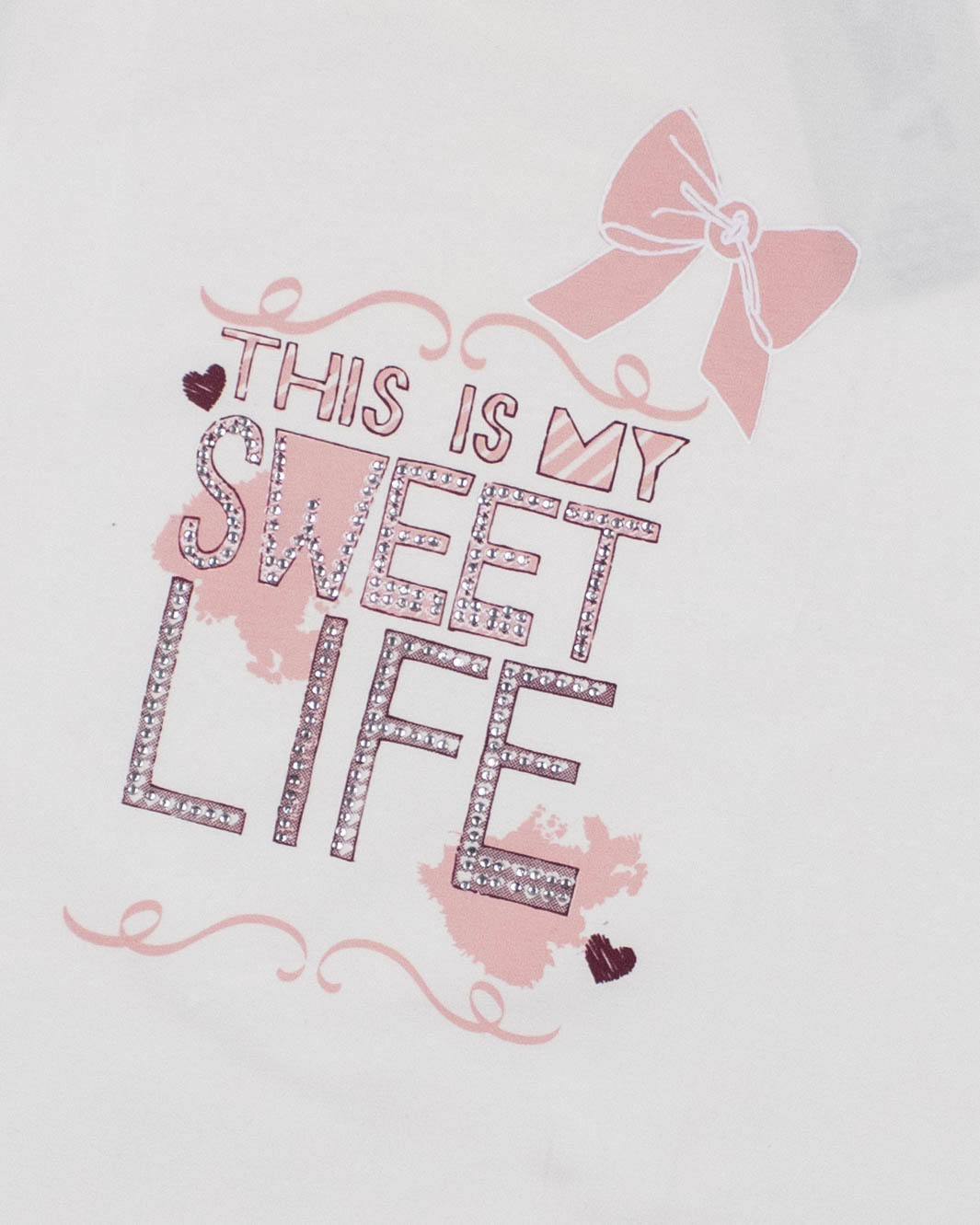Cтильная пижама для девочки сделана из натурального дышащего материала. Популярная модель от турецкого бренда Baykar дополнена принтом и набивным рисунком. Классическая футболка с коротким рукавом и высокой горловиной имеет форму трапеции. Бриджи с контрастными лампасами плотно прилегают к телу, не мешают движениям.
