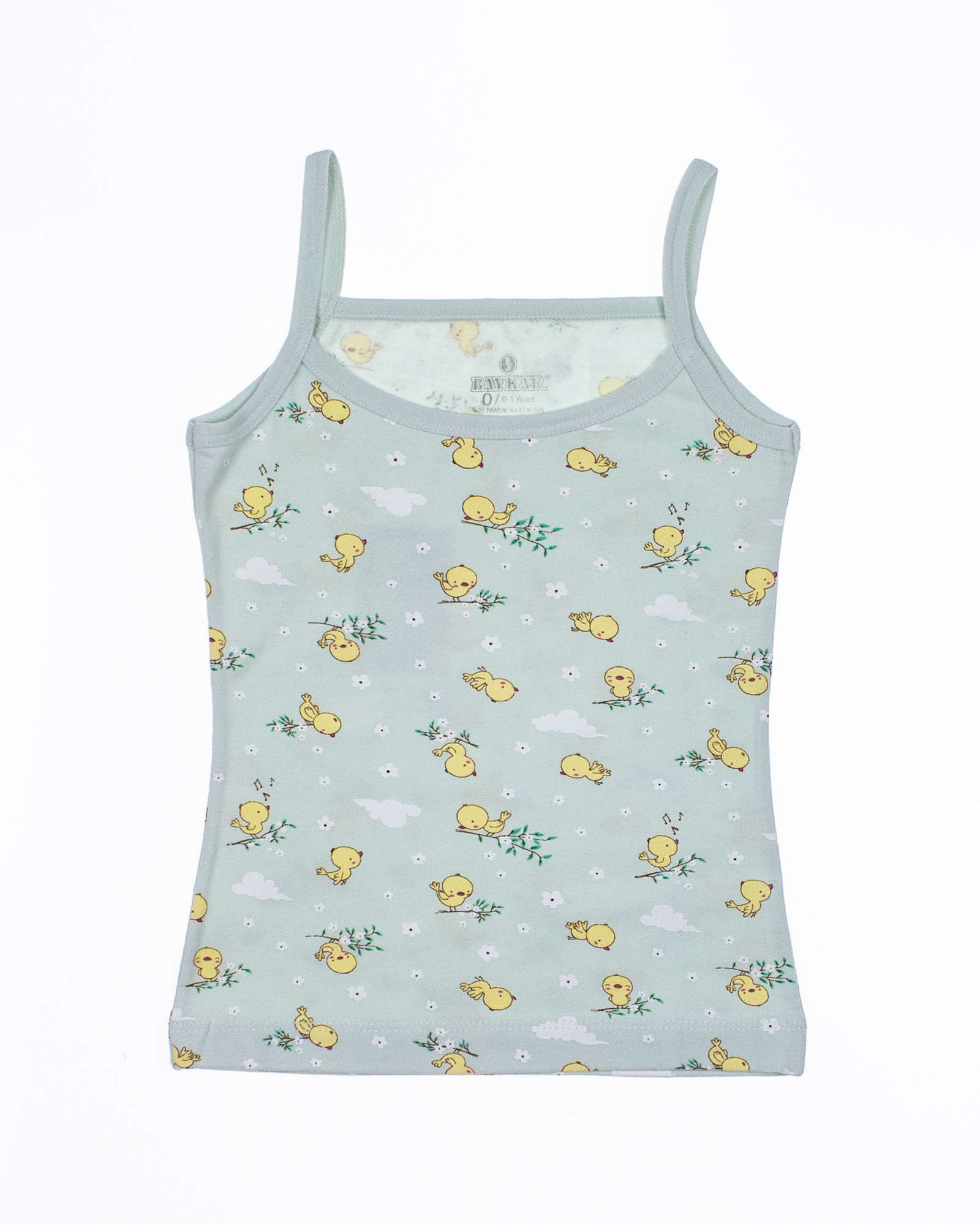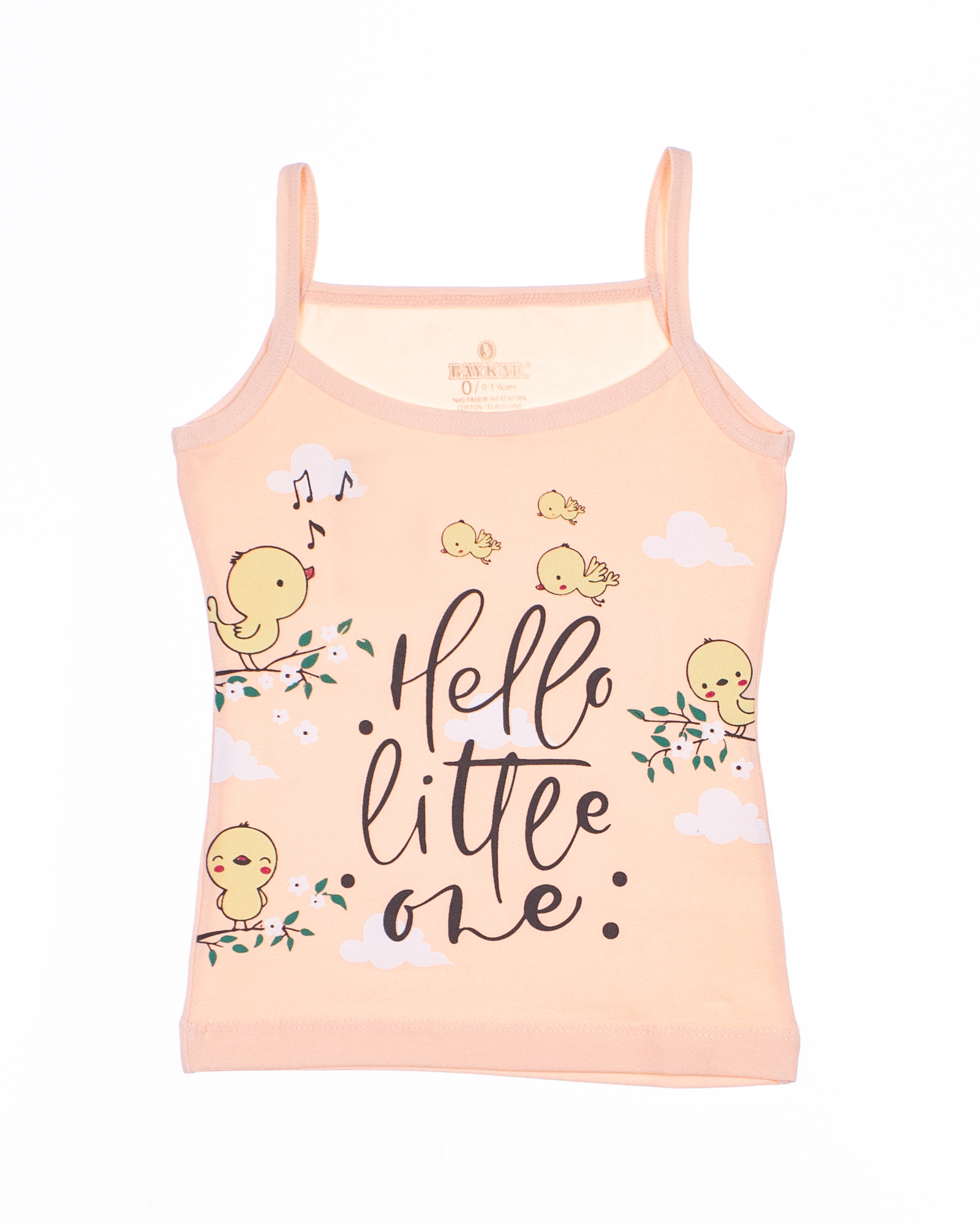 Лямочки мягко облегают плечи, фиксируют изделие в едином положении на протяжении дня, из-за чего одежда не задирается, не сползает, не перекручивается. Силуэт слегка прилегает к телу, из-за чего белье носится и полными, и худенькими девочками.. Постельный цвет маечки приятно смотрится, а принт на переднем полотне добавляет образу свежести, аккуратности и нежности. Детская одежда носится как ночнушка, нижнее белье или как белье для повседневной носки дома, в школу.