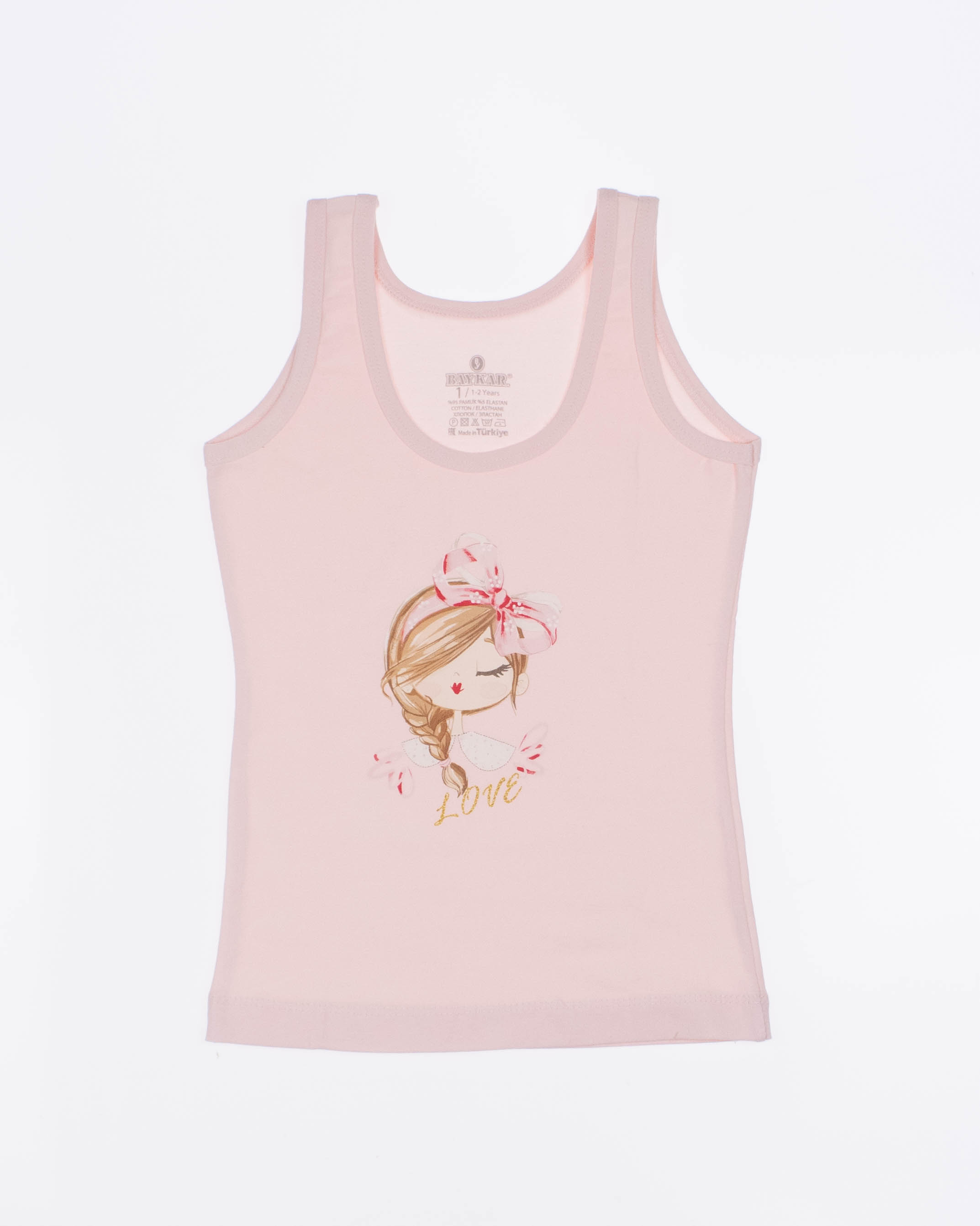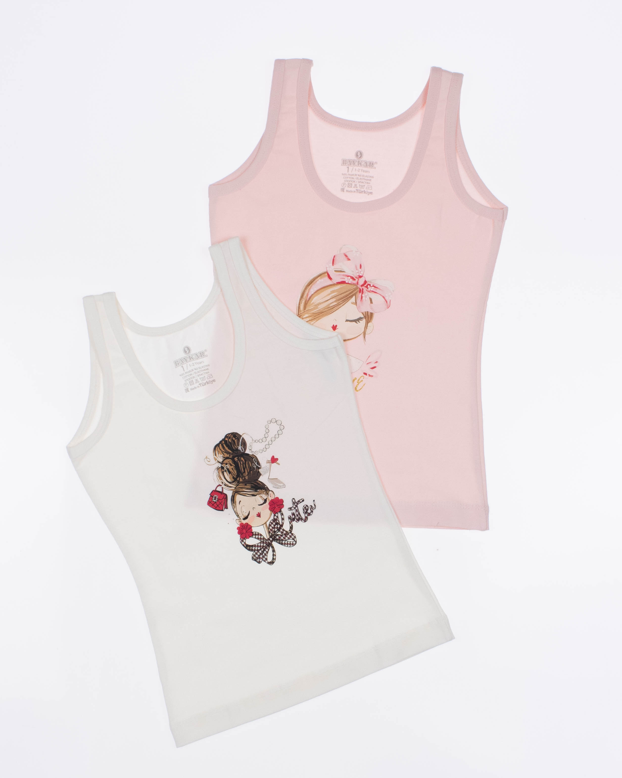 Лямочки мягко облегают плечи, фиксируют изделие в едином положении на протяжении дня, из-за чего одежда не задирается, не сползает, не перекручивается. Силуэт слегка прилегает к телу, из-за чего белье носится и полными, и худенькими девочками.. Постельный цвет маечки приятно смотрится, а принт на переднем полотне добавляет образу свежести, аккуратности и нежности. Детская одежда носится как ночнушка, нижнее белье или как белье для повседневной носки дома, в школу.