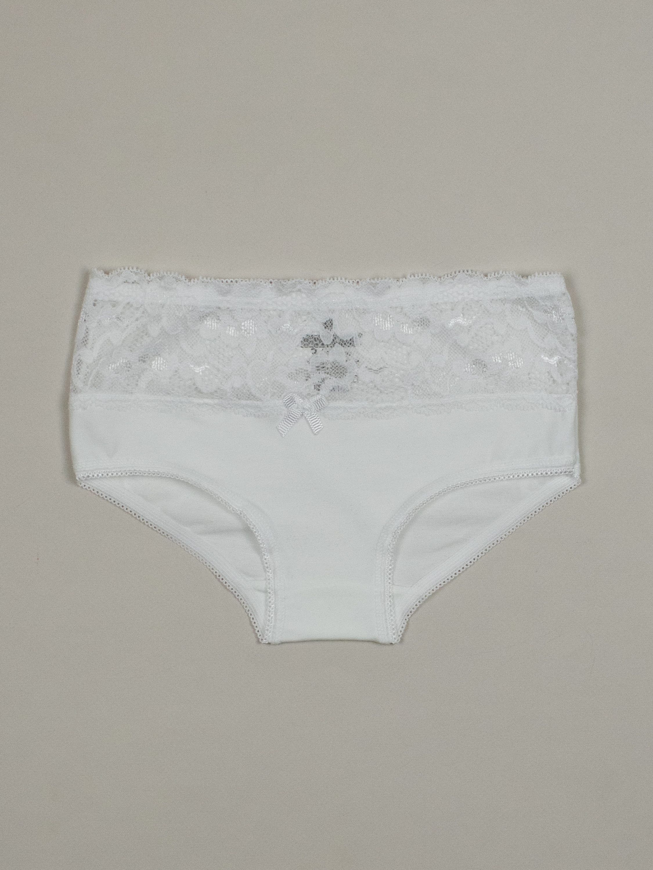 Трусы детские для девочек хлопковые, украшены узорчатым эластичным кружевом.Классическая модель с удобной посадкой, мягкие на ощупь, комфортные и безупречные в носке. Мягкая резинка не давит и не натирает кожу. Дышащая, хлопковая ткань гарантирует комфорт в течение дня.
