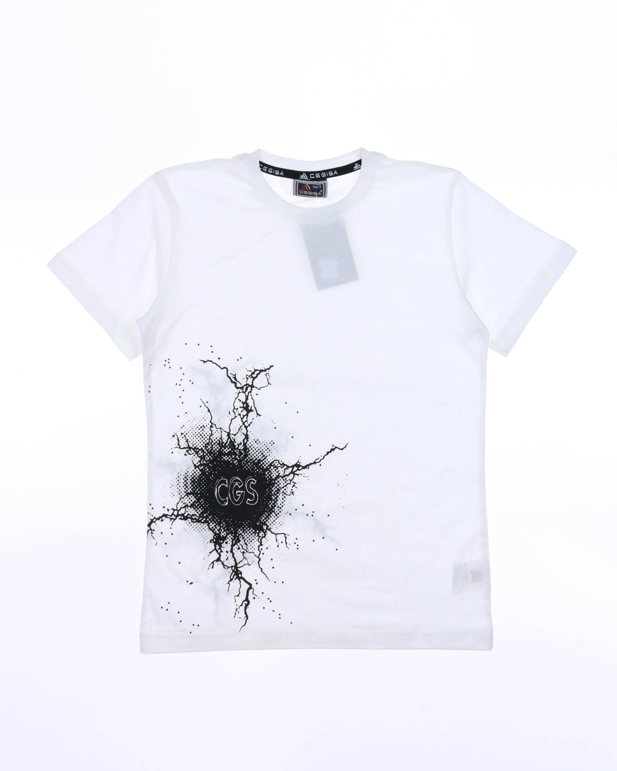 Футболка для мальчика из хлопка. Украшена стильным оригинальным принтом, который сохраняет яркость и стойкость после многочисленных стирок. Прекрасно сочетается с джинсами, шортами и бриджами.