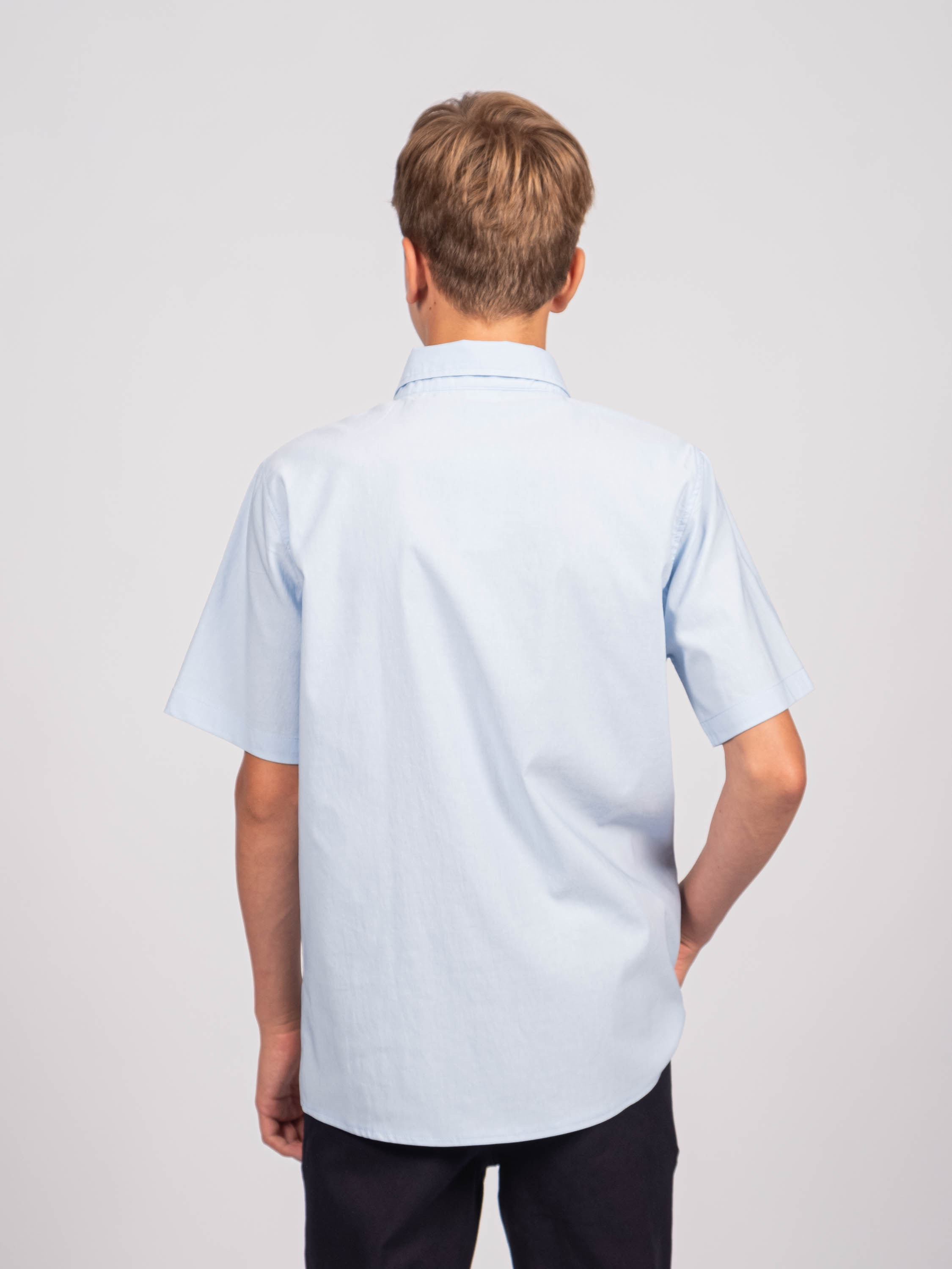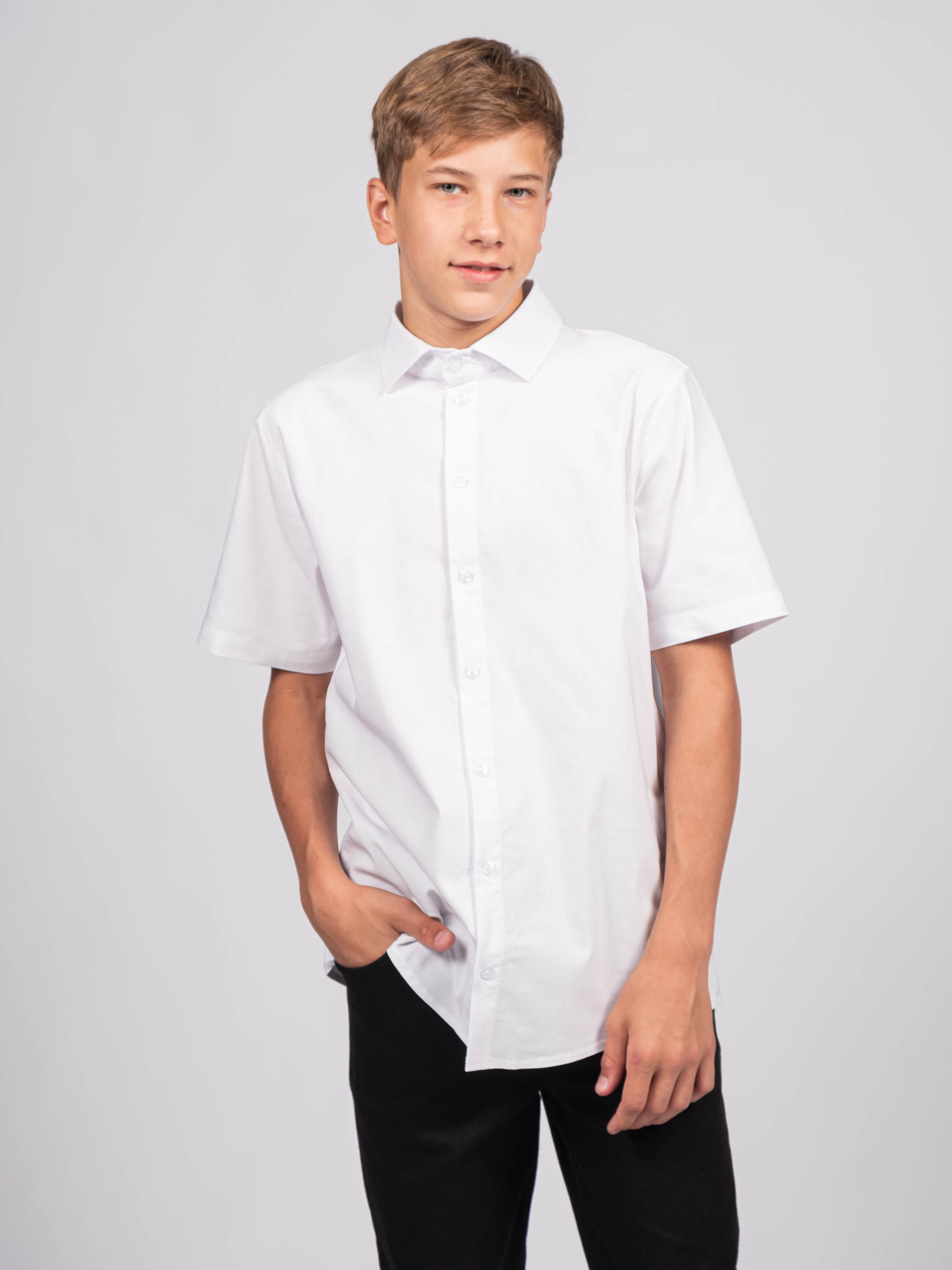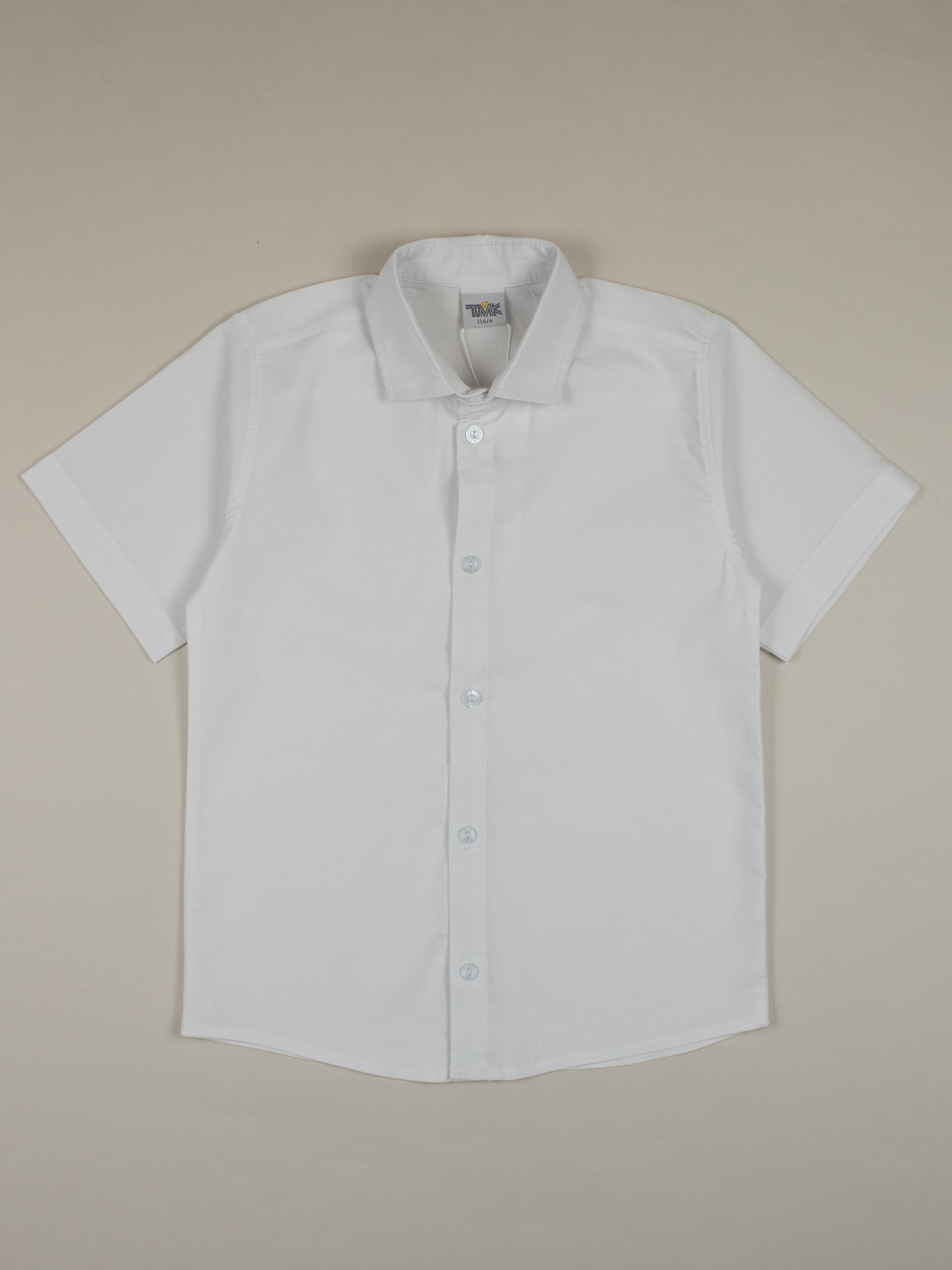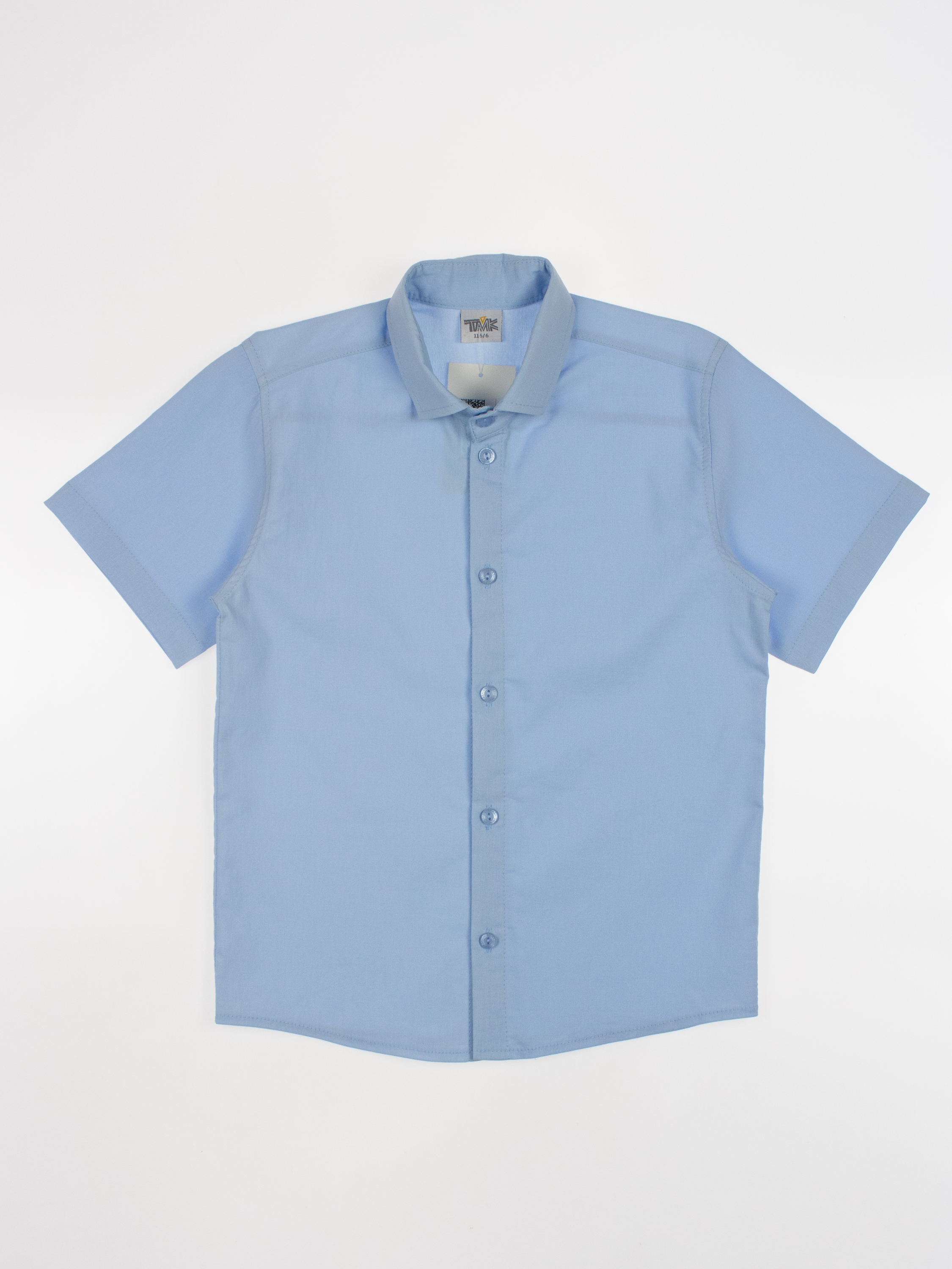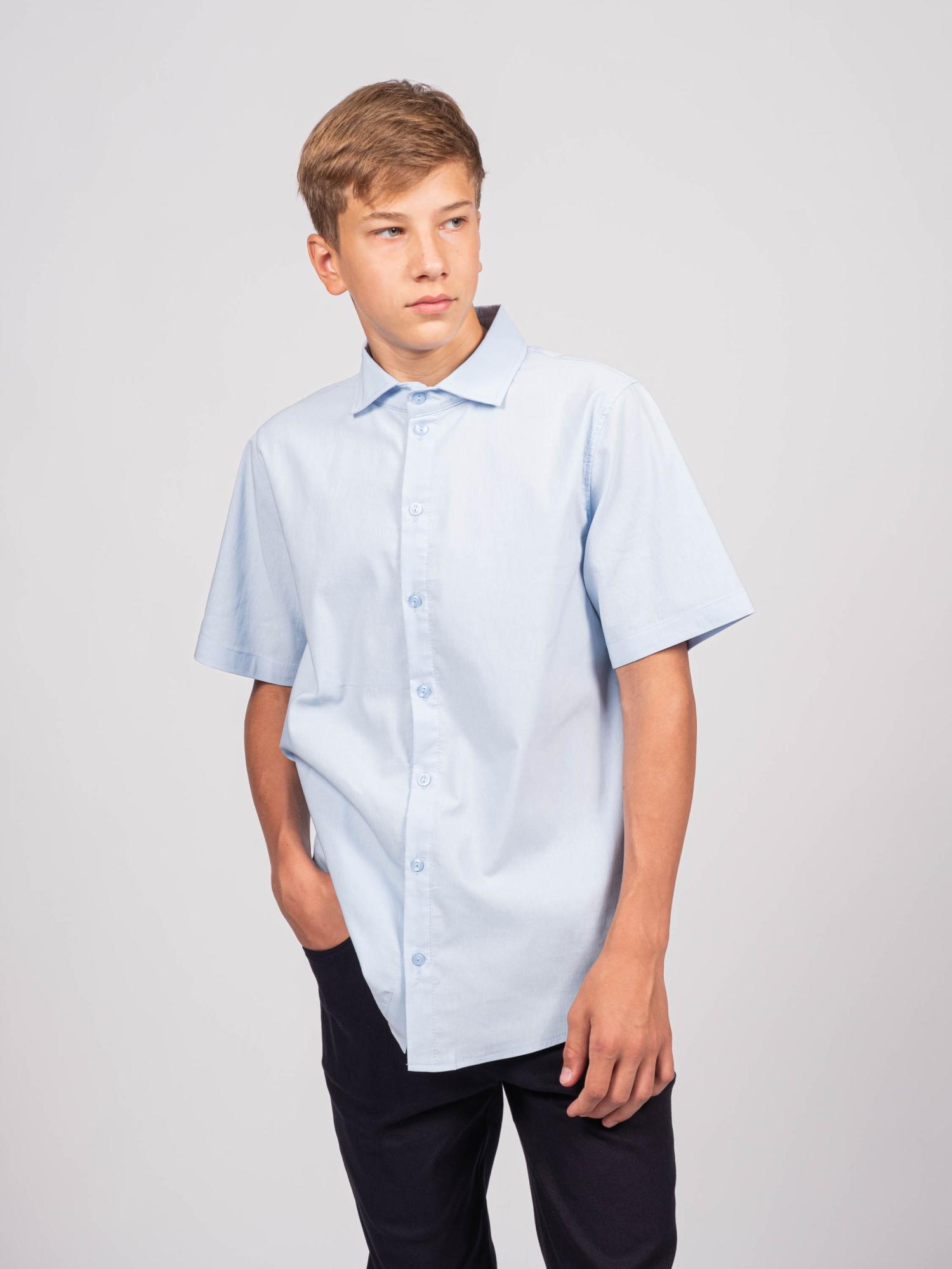 Детская однотонная рубашка для мальчиков оптом. Рубашка изготавлена из смесового материала высокого качества. Модель застегивается на пуговицы.