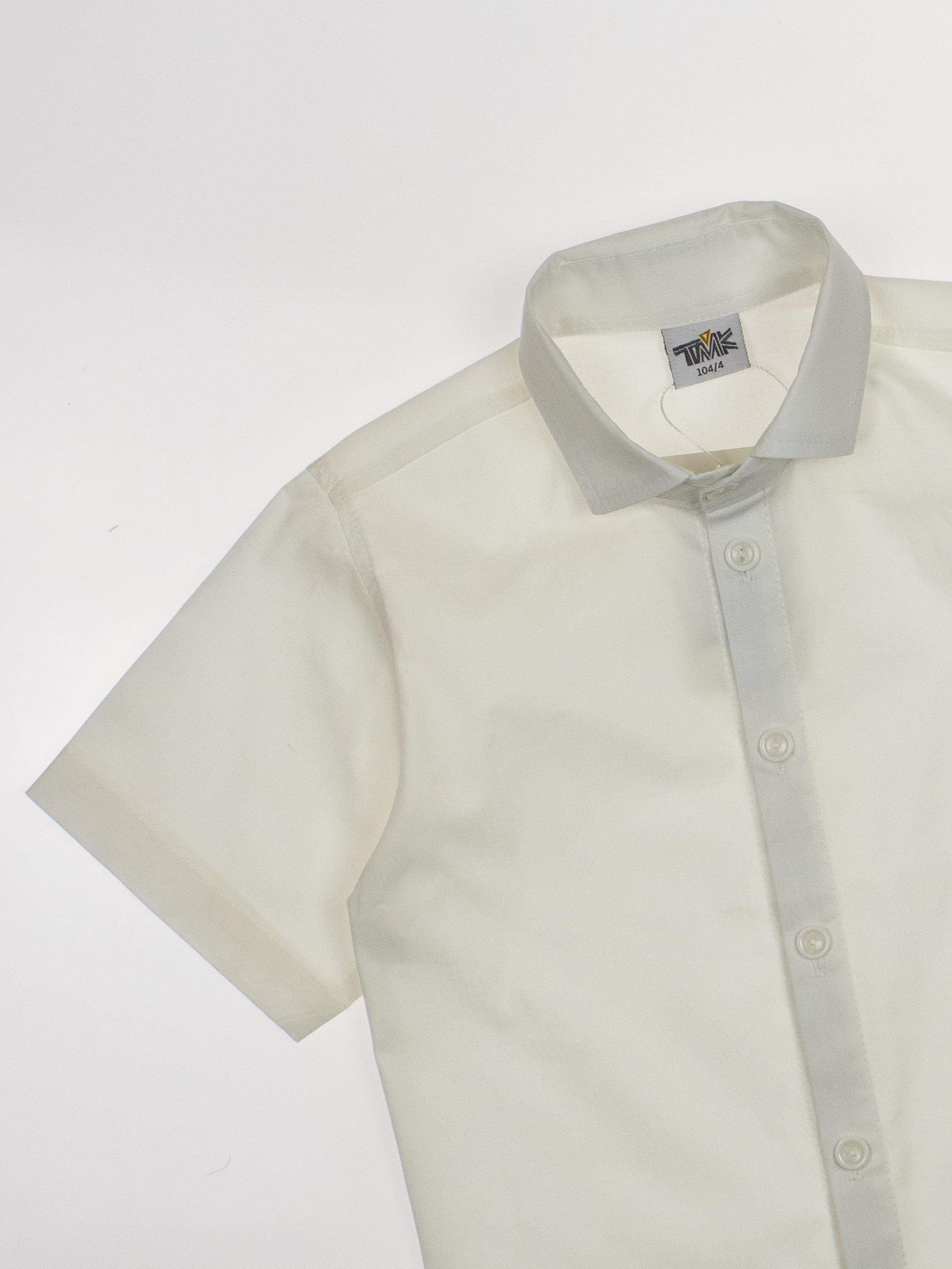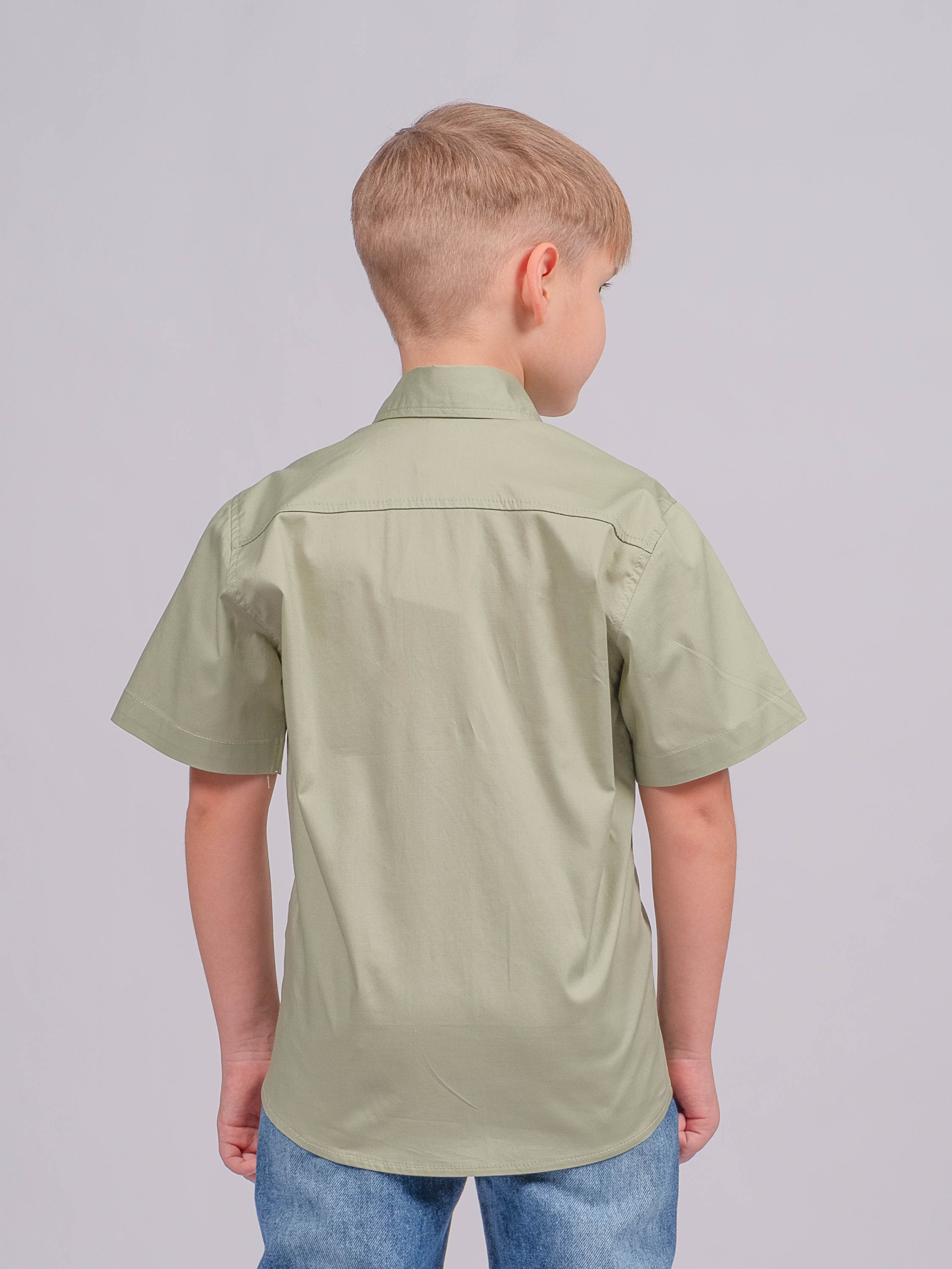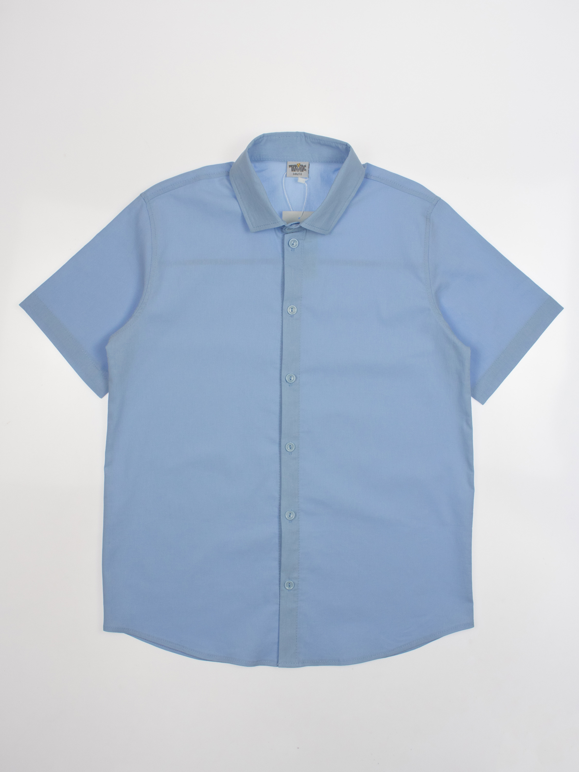 Детская однотонная рубашка с коротким рукавом для мальчика оптом. Рубашка изготавлена из смесового материала высокого качества. Модель застегивается на пуговицы.